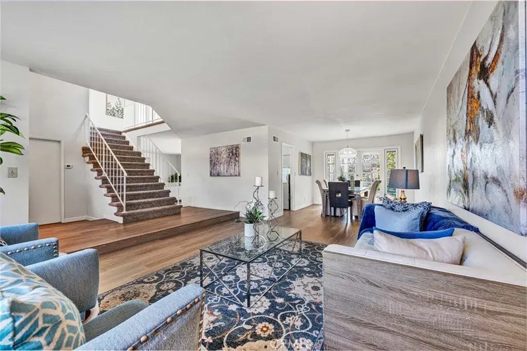 Welcome to this charming 3-bedroom, 2.5-bathroom home in the highly sought-after Tustin Meadows community. With 1,972 square feet of living space, this home features fresh paint, newly installed vinyl flooring and plush carpet throughout. Step inside to a bright and spacious living room that seamlessly flows into the dining area, where French doors open to a beautifully landscaped backyard with lemon, avocado, and persimmon trees. The kitchen offers backyard views, a breakfast bar, and direct access to the cozy family room with a fireplaceperfect for gatherings. Just off the family room, a serene enclosed patio provides a peaceful retreat. The first floor also includes a convenient half bathroom and inside laundry room. Upstairs, you'll find three generously sized bedrooms, including a primary suite with high ceilings and a bathroom with dual sinks. Enjoy the exceptional amenities of Tustin Meadows, including parks, walking trails, clubhouses, pools, and sports courts. With easy access to The District, Tustin Marketplace, schools, and major freeways, this home offers both comfort and convenience. Dont miss this incredible opportunity!