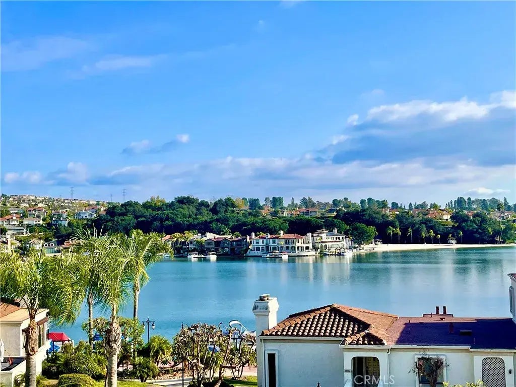 Spectacular lake views are sure to impress from almost every room in the house. Welcome home to the prestigious gated lake community of MALLORCA. This super cute 2 bedroom 2 bath condo has been beautifully remodeled and ready to move in. The deck wraps around facing east and south east to enjoy your coffee on the deck and watch the sun rise. The home has automatic awnings for shade in the patio and to keep the home cooler in the summer months. The kitchen has custom cabinets, farmer's sink, quartz counters, stainless appliances, includes refrigerator, wine fridge, microwave, 5 burner stove and dishwasher. Flooring includes luxury laminate, tile and carpet. Enjoy a formal dining room off the kitchen that is open to the living room with cozy fireplace. Also includes the big screen TV with remote. The spa-like primary bathroom has a luxurious stand alone soaking tub complete with blue tooth speaker and mounted TV. You will appreciate the huge walk in custom shower and dual vanity with quartz countertops and plenty of storage. The primary bedroom is spacious with tranquil views of the gorgeous blue lake. The secondary bedroom has a nice size closet and perfect if needed for an office, kid's room or guest room. The second bathroom is adjacent to the second bedroom with tub and shower and quartz vanity. The washer and dryer is included and off the hallway in a closet. The 2 car garage is detached but close by. There are 2 community pools and just a few steps from the condo is the lower pool/spa. You will have access to the Mission Viejo beach club, concerts and boat rentals. The