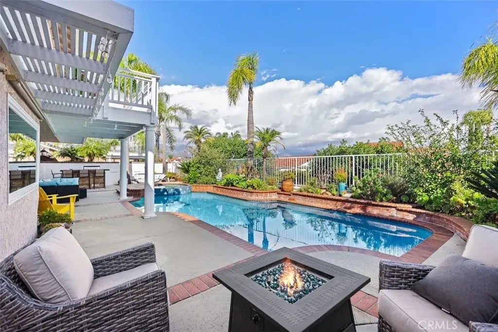 Tucked away on a peaceful hilltop, cul-de-sac in the highly sought-after Madrid Del Lago community, this stunning 4-bedroom home offers breathtaking views of Saddleback Mountains. With an inviting backyard oasis, modern upgrades, and a spacious floor plan, this home is designed for both comfort and entertaining. Step inside to a grand foyer with soaring vaulted ceilings, leading to the formal living and dining roomsperfect for hosting gatherings. Beyond the elegant curved staircase, the open-concept great room seamlessly connects the kitchen, casual dining area, and family room, complete with a custom built-in entertainment center. The kitchen is a chefs dream, featuring white cabinetry, a large island with seating, built in fridge, black granite countertops, a double oven, and a built-in stove. The main level also includes a powder room, laundry room with laundry chute, and direct access to the attached two-car garage. The family room opens to a private backyard retreat, complete with a saltwater pool, spa, and built-in BBQ, perfect for year-round outdoor living. Upstairs, you'll find four spacious bedrooms, including an oversized primary suite with dual closets and ensuite bath with dual sinks and a vanity area. One of the secondary bedrooms, currently used as an office, features a private deck with panoramic viewsthe perfect spot to take in Lake Mission Viejos 4th of July fireworks and peek a boo lake views! Every room has a different view of the mountains to enjoy. This home has been meticulously maintained, featuring a whole-house re-pipe, updated pool equipment, a new