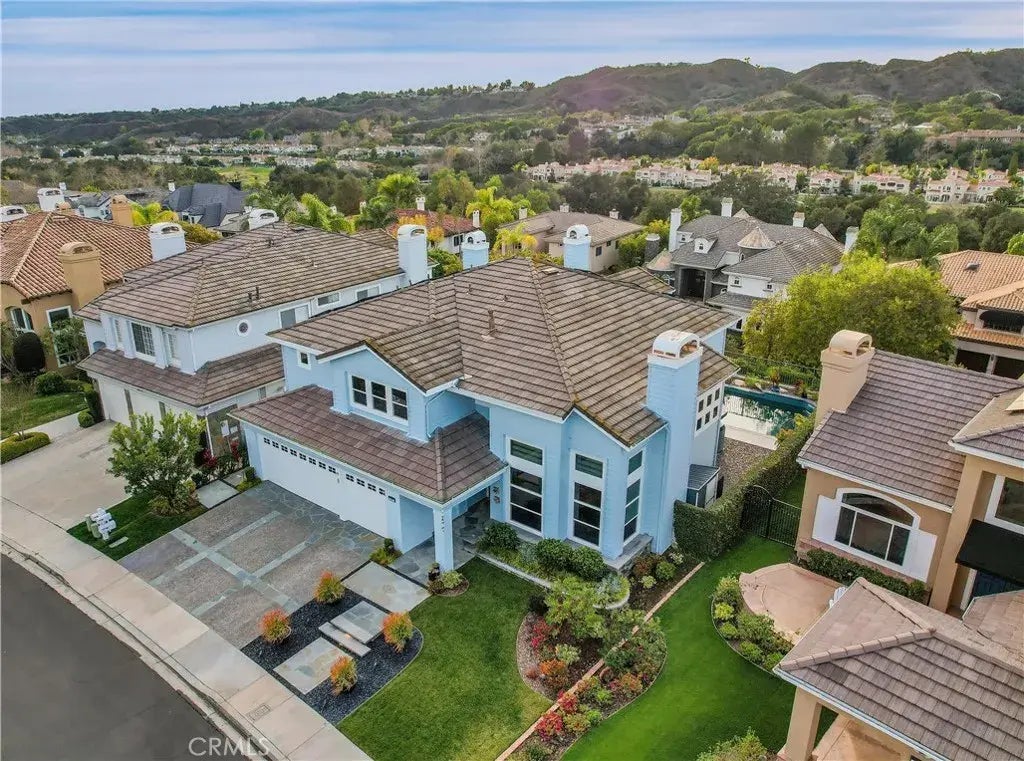 Prepare to fall in love with this Spacious View Home ideally located in the highly desirable Hillsboro community in exclusive guard gated Coto de Caza, superbly located perched high on a single loaded street with tranquil panoramic views. The colorful manicured landscaping and quaint Cape Cod influenced exterior features create a welcoming first impression. Step inside through the elegant double door entry with wrought iron detailing and soak in the grand interior features including a spectacular wrought iron staircase, soaring two story ceilings, and numerous windows creating an open spacious feel. The formal living room is a graceful space for gatherings around the stately fireplace. The formal dining room boasts lofty ceilings, an exquisite chandelier, and French doors opening to the back patio providing elegant ambiance for entertaining. Pass by the luxurious built-in wet bar with wine storage and cooler and on to the separate family room with a built-in media center and cabinetry, a cozy fireplace, and French doors opening to the back patio providing an ideal indoor-outdoor living space. The sparkling Gourmet kitchen is a dream with elegant Quartzite countertops and backsplash, an abundance of cabinets and storage space, double ovens, high end gas range, a huge center island with breakfast bar, and a sunny kitchen nook taking full advantage of those amazing backyard views. The main level includes a prized in-law bedroom suite and an oversized laundry room with utility sink and extra storage. Travel up the exquisite staircase to the upper level which boasts a large bonu