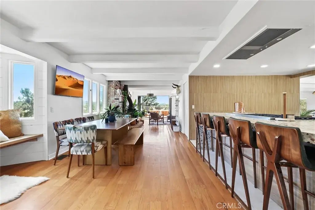 PRICE ADJUSTMENT!! When your senses are ready to be filled, the panoramic, wraparound views from this stunningly upgraded 2.5 Acre RANCHO CARRILLO home will surely delight. Situated on possibly the best view lot in the community, this 3 br/2.5 ba home has been lovingly remodeled with a Boho/Mid Century Modern blend that perfectly pairs sophistication and comfort. Living & dining areas seamlessly flow together, with just the right amount of separation - making this the perfect entertainers space. The grand outdoor deck is accessed through Panorama doors, and features an incredible outdoor kitchen with many al fresco dining and relaxation spaces. When the mood strikes, slip into the spa, rinse off in the outdoor shower, or mix it up with a hot yoga workout in your own personal outdoor studio that doubles as an all-frequency infrared sauna. Then jump into the cold plunge to get your senses dancing! When its time to share a meal, the chef's kitchen will surely inspire, and there's plenty of room for friends or family to gather at the island bar seating - the stories and laughter are all the more precious around the stovetop. Feel the warmth of the Wood burning fireplace, as you gather in the delightful dining space, or take it into the Family room with cozy linear fireplace and room for everybody. At the end of the day, your beautiful principal bedroom awaits, where daytime views melt into glorious SUNSETS and CITY LIGHTS. A lovely upstairs laundry room and two more beds and hall bath means everyone has their own private place. The property also features two ADU's for guests/te