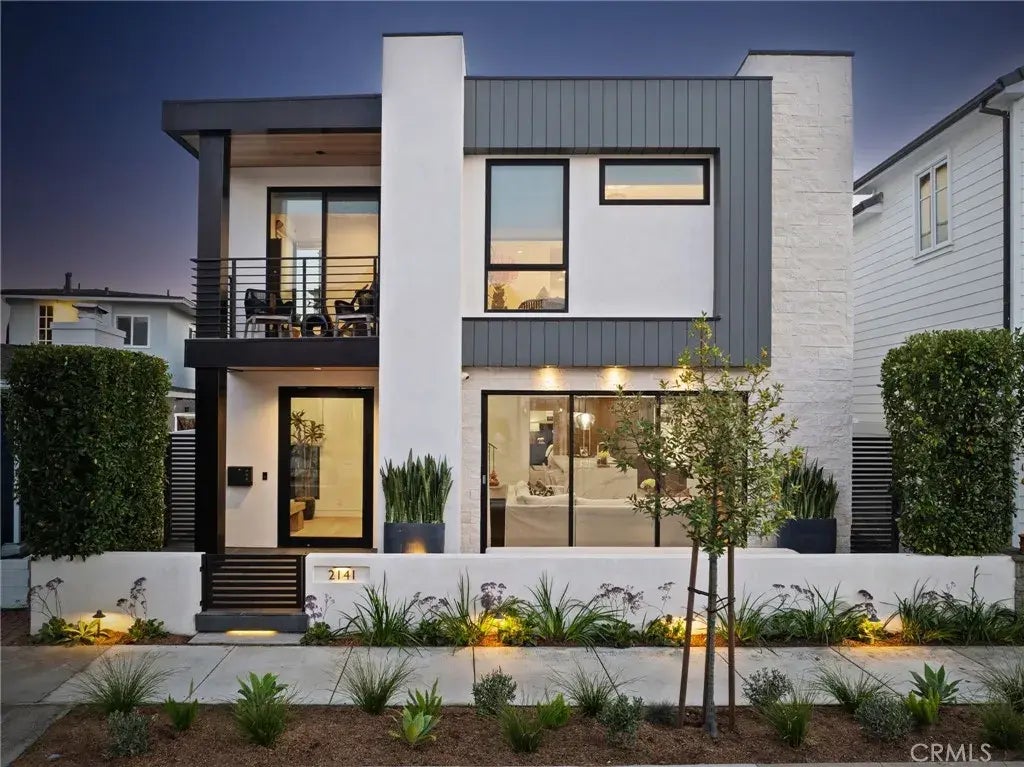 Just steps to the Wedge, this is a turnkey opportunity with a coveted location on the Balboa Peninsula Point. No detail has been overlooked in this 4-bedroom, 4.5 bath coastal contemporary beachside residence. This 3,300 sq. ft home spans three levels, embracing an open-concept living experience. Blending comfort, function, and a soft contemporary ambiance, this home offers effortless style accentuated by beautiful European Oak wood flooring that extends throughout. Adorned with hand-selected designer finishes by BlackBand Designs, this thoughtfully designed home is the epitome of modern luxury. The main living area boasts an open floor plan, enhanced by sliding windows that invite a refreshing circulation of light and air. The kitchen, dining area, and living room are connected and anchored by a Mezzo 48 gas fireplace. The pristine kitchen showcases top-end Miele appliances, two-toned cabinetry by the renowned European cabinet maker, Leicht, and Antolini high-polish porcelain countertops with book-matched waterfall edges. The rarity of this property is further enhanced by the oversized lot, accommodating a downstairs patio and main-level bedroom, an uncommon combination for an interior Peninsula Point lot. Retreat upstairs to the lavish master suite, a tranquil sanctuary that boasts a private lounge/gym, linear Primo 48" see-through fireplace, balcony, a large walk-in closet, and a spa-inspired en suite bathroom featuring a luxurious freestanding tub, oversized shower, and Leicht his-and-hers vanities. Two additional en suite bathrooms with walk-in closets are showcased on