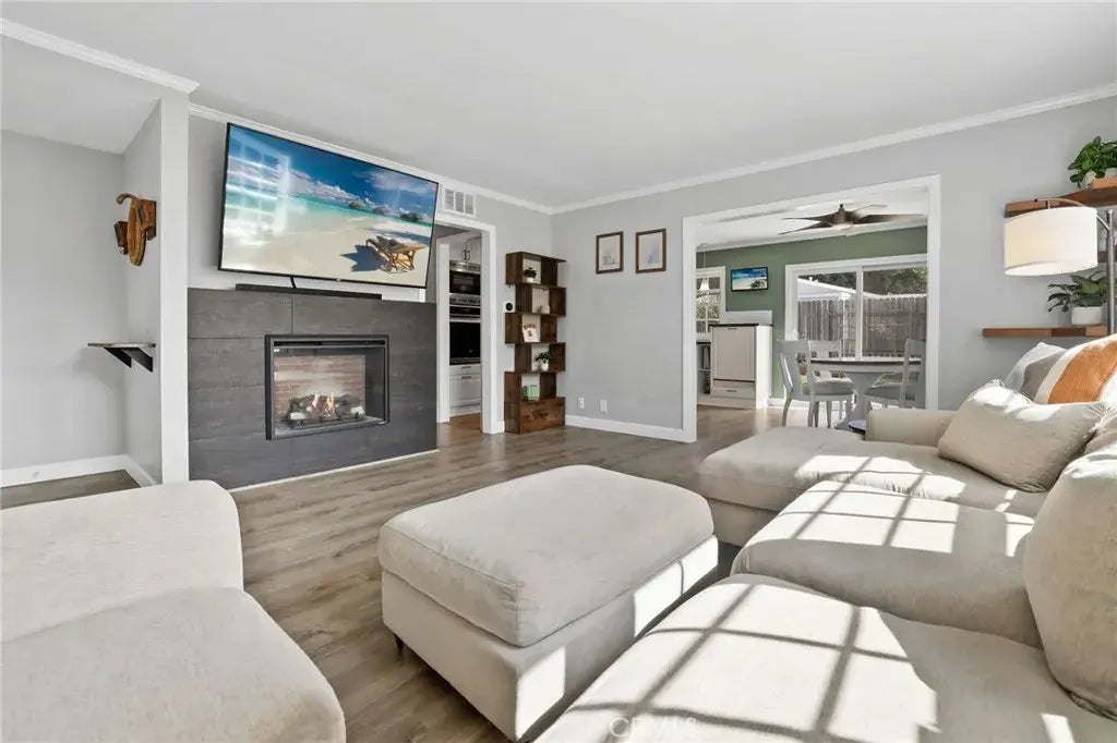 Just moments from the sun-drenched shores of Huntington Beach, 19362 Waterbury Ln is a masterclass in modern coastal living. Nestled in the sought-after South Shores neighborhood, this stunning 3-bedroom, 2-bathroom home offers an effortless blend of luxury upgrades, refined design, and a seamless indoor-outdoor flow in one of Orange Countys most desirable locations. Step inside to discover a beautifully remodeled kitchen designed to impress, featuring Caesarstone countertops, Thermador appliances, a raised dishwasher, Bosch refrigerator, and smart LED-lit soft-close drawers. The built-in dining storage adds both charm and functionality. Throughout the home, newer laminate wood floors, crown molding, and 6 baseboards create a refined, seamless aesthetic. The family room is bathed in sunlight, enhanced by an electric fireplace, perfect for cozy evenings. The primary suite offers a peaceful retreat with an ensuite bath, while the spacious secondary bedrooms provide comfort for family or guests. A remodeled secondary bathroom features an upgraded vanity, LED-lit mirror, and built-in storage, adding a touch of luxury. Outside, a large front and backyard provide endless opportunities for entertaining and relaxation. With a freshly painted exterior, new smart garage door, new roof with a 30-year warranty, redone stucco with a 30-year warranty, whole house fan, and upgraded electrical panel, this home is move-in ready with modern amenities at every turn. Experience elevated coastal living in a home that seamlessly blends style and serenityjust minutes from the beach, award-winning