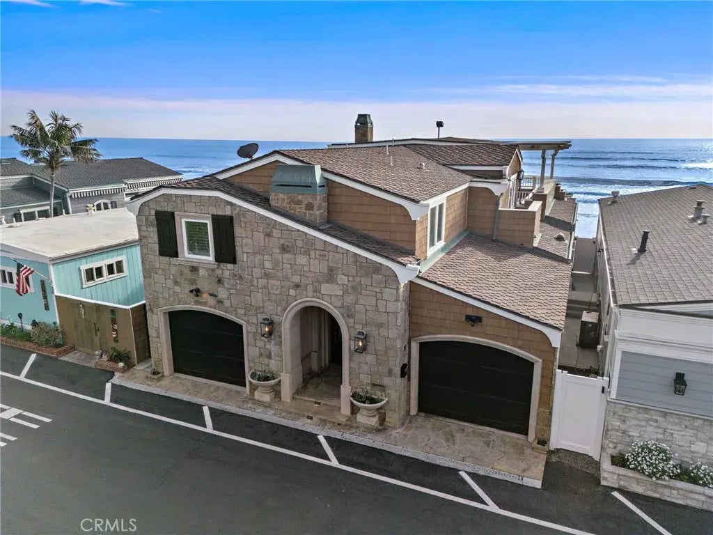 Elevating the quintessential beach cottage to an unparalleled level of refinement, this custom oceanfront estate in San Clementes exclusive Capistrano Shores redefines coastal luxury. Commanding a rare on-the-sand setting, the home enjoys uninterrupted vistas that span the iconic San Clemente Pier, the rolling waves of the Pacific, Catalina Islands serene silhouette, fiery sunsets, and the dramatic Dana Point Headlands. Thoughtfully designed to maximize its breathtaking surroundings, the approximately 3,000-square-foot residence offers five bedroomsincluding a versatile bunk roomand four-and-one-half baths across two meticulously crafted levels. Every element speaks to impeccable craftsmanship, from the exteriors timeless stone and shingle detailing to the interiors bespoke millwork and handcrafted built-ins. Expansive frameless glass accordion doors dissolve the boundaries between the open-concept living and dining areas and the covered beachfront terrace, where stairs lead directly to the sand. A sophisticated fireplace, a built-in bar with dual beverage refrigerators, surround sound, a glass-enclosed wine display, and custom seating seamlessly merge elegance with livability. The chefs kitchen is a masterpiece of design, showcasing dual islands, illuminated glass cabinetry, a full tile backsplash, a stainless-steel apron sink, bar seating, and top-tier appliances, including a built-in Sub-Zero refrigerator and a professional Wolf range with double ovens, six burners, and a griddle. A main-level ensuite bedroom adds convenience, while two single-car garages feature epoxy f