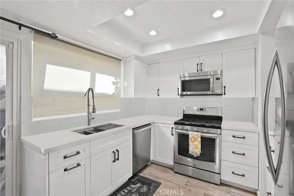 An incredible opportunity to own a beautifully remodeled, spacious 2-bedroom, 2.5-bath home with separate 1bd 1ba ADU in the highly coveted Chateau Blanc community of Fountain Valley. This home has been meticulously updated with the finest designer finishes and details creating an air of sophistication throughout. Quartz counter top kitchens with white cabinetry and stainless steel Miele and Bosch appliances. The main house offers two spacious en-suite bedrooms with luxurious marble counter top baths, providing the ultimate in privacy and comfort. Custom touches like a copper piping stair railing, designer lighting, and a ceiling fan in the living room elevate the entire space, making it truly one-of-a-kind. Central HVAC. The two car garage includes built in storage racks overhead and a long one wall, full size laundry area with newer washer and dryer, laundry sink, and whole-house water softener system. The separate access ADU above the garage offers a kitchenette, full bathroom, and currently generates $1,495/month in stable rental income on a month-to-month basis. The tenant is willing to stay, making it the perfect opportunity to subsidize your mortgage. Chateau Blanc is an amenity-rich community, with tree-shaded green belts, basketball and tennis courts, a sparkling pool, ample guest parking and a large rentable clubhouse, all just steps from your door. With easy access to major shopping centers and roadways, this home offers the best of both worlds: a luxurious living space and an investment opportunity thats rare to come by. Dont let this stunning home slip awaykeep
