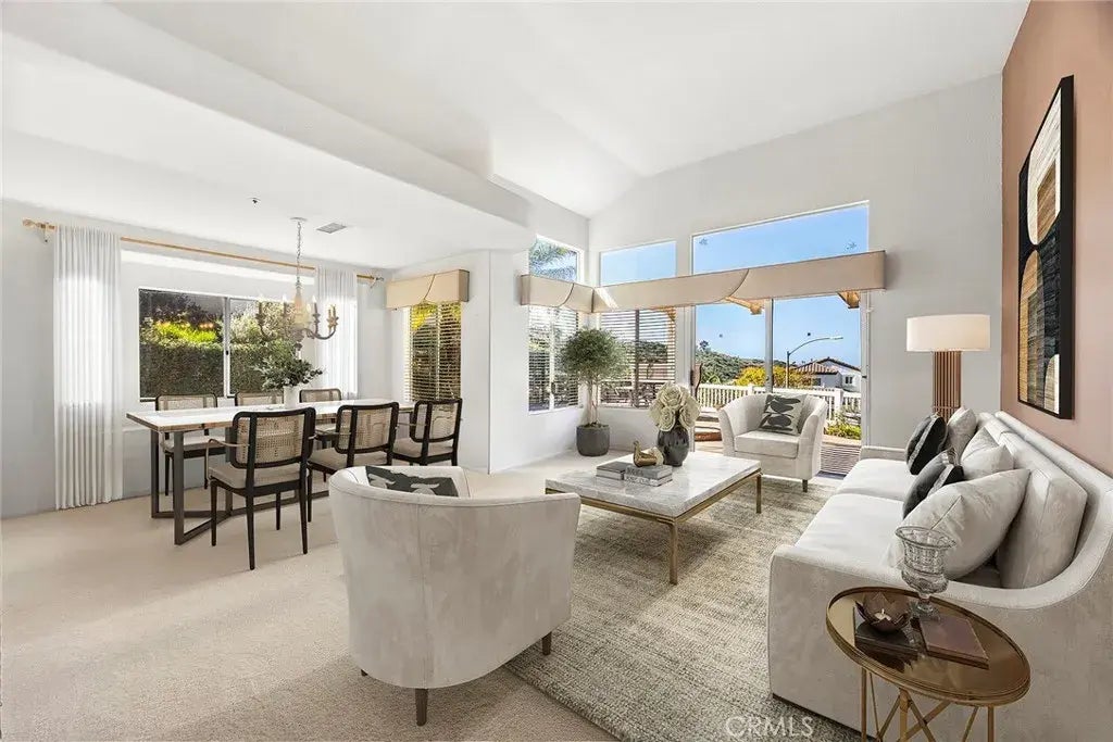 Welcome to Via Santa Maria, an exceptional property perched atop the rolling hills, offering breathtaking views of the mighty Pacific Ocean. Wake up each day to stunning coastal vistas in the charming city known as the "Spanish Village by the Sea." This peaceful, vibrant neighborhood is the perfect setting for those seeking both serenity and comfort. Curb appeal is just the beginning. The array of colors and thoughtful design throughout this community is sure to delight those with an appreciation for beauty and style. As you step into this immaculate three-bedroom, three-bathroom home, youll be greeted by soaring ceilings and an elegant winding staircase that sets the tone for the entire property. A short walk past a convenient half bath leads you to the spacious family room, where your first glimpse of ocean blue will take your breath away. The downstairs master suite, nestled adjacent to the family room, offers a generous living space, and the master bath features both a separate soaking tub and a walk-in shower for ultimate relaxation. The cozy kitchen is equipped with modern stainless steel appliances, including a newer refrigerator, dishwasher, double oven, and microwave. It seamlessly connects to the family room and a separate dining areaideal for both casual living and entertaining. Upstairs, youll find two generously-sized bedrooms and a dual-vanity full bath. Dont forget to take another peek from the back bedroommore of that stunning ocean view awaits! When it's time to unwind or host guests, step outside into your beautifully manicured backyard. With large stone w
