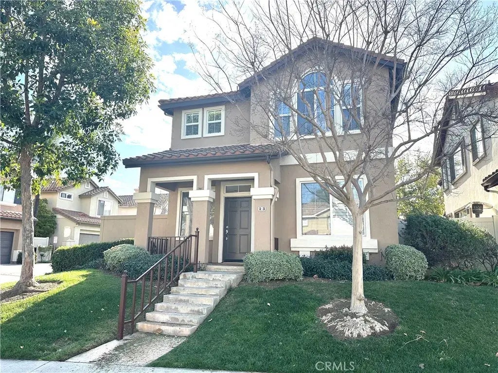 Welcome to 23 Paseo Acebo, nestled in the heart of the highly sought-after Rancho Santa Margarita. Located in the charming Castile community, this expansive home boasts the largest floor plan on a premium lot, with no neighbors on one side and one of the few homes in the neighborhood with a driveway. Designed for modern living, the floor plan offers 3 bedrooms plus a spacious bonus room, all located upstairs, along with 2.5 baths and a 2-car garage. The main level features a welcoming living room, dining room, and a cozy family room with a stunning fireplace adorned with custom mosaic tile. Upstairs, you'll find a dedicated computer work station, a full-size laundry room, and linen closet. Upgrades throughout include new carpeting, porcelain tile flooring on the first floor, 5" baseboards, fresh custom paint, updated lighting, and more. Step outside to the beautifully landscaped, low-maintenance backyard featuring flawless hardscape. The HOA takes care of exterior landscape maintenance, allowing for a hassle-free lifestyle. Ideally located within walking distance to shopping, dining, Central park, and schools, this home offers easy access to the 241 Foothill Transportation Corridor. Rancho Santa Margarita is ranked the #1 safest city in California, according to a 2024 Safewise report.