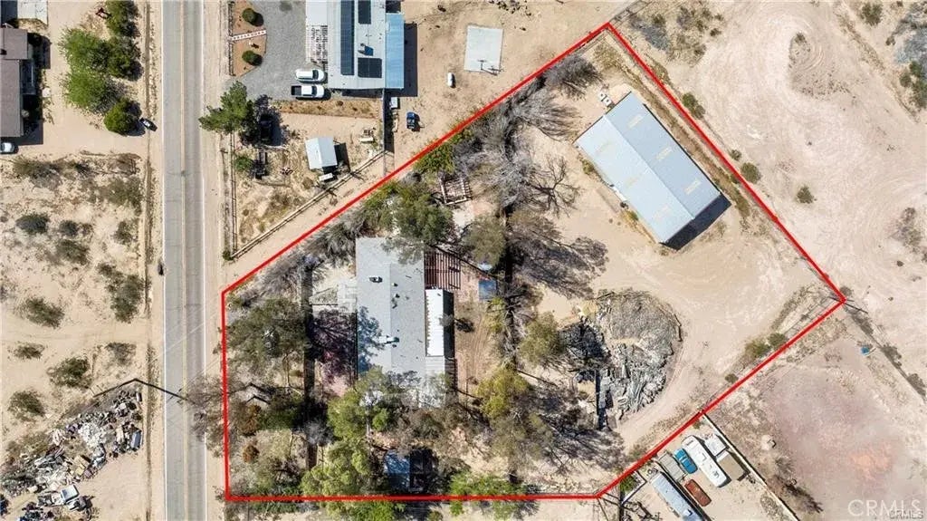 Motivated Seller Priced to Sell! Dont Miss This Unique Opportunity! This fully fenced desert-view property offers an incredible blend of comfortable living and exceptional workspace, featuring a spacious 3-bedroom, 2-bath home and a massive 75' x 40' metal workshop with two 12' roller garage doors, all on 1.29 acres of land. The Home: Tile and laminate flooring throughout for easy maintenance. Main bath includes a spa tub and shower for ultimate relaxation. Newly installed kitchen with dual-pane vinyl windows and shutters throughout. All-electric home, heated efficiently by a wood-burning stove fireplace that warms the entire house in no time. Open floor plan with a spacious kitchen featuring plenty of cabinet space. Enclosed sunroom with laundry space for added convenience. Wood patios provide privacy and a perfect outdoor retreat. Attached two-car garage with a full wall of enclosed shelving for organized storage. Four storage sheds to accommodate all your extra belongings. Outdoor shower/dog wash to meet all your outdoor needs. Lush yard with a variety of trees for shade and beauty. The Workshop: Massive 75' x 40' metal building, fully insulated with skylights for natural light. Two 12' roller garage doors for easy access. Superior electrical setup: 10-gauge wiring, two electrical panels, and two sub-panels. 4-ft shop lights for excellent visibility. Prepped for a full bath (fixtures included but not installed). Secondary septic tank (never utilized). This property is a rare findperfect for those who need space for work, hobbies, or outdoor living. Schedule your showing