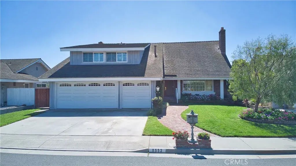 SOUTH HB GIANT WITH SIX BEDROOMS IS OCEAN CLOSE AND WORTH THE WAIT! First time on the market in 50 YEARS! This CLEAN, LIGHT & BRIGHT, WELL-LOVED Huntington View Gem is tucked away in this neighborhood of picture perfect homes-ready for its new residents to make it their own dream home. Your experience starts at the curb, with its lush lawn, colorful flowerbeds, and brick pathway to the covered front porch. Ample parking is available in your x-wide driveway and in your 3-car garage. Warm and welcoming entry is via the solid wood foyer opening to the living room with sky high vaulted ceiling, centerpiece fireplace, and large picture window view to the front yard garden. The formal dining room with window to the backyard is adjacent to the living room and kitchen. If you enjoy entertaining, eating and cooking=this bright and cheery kitchen has a GREAT functional layout and features hardwood cabinetry with smart storage, solid surface counters and a breakfast nook that opens to the family room with built-in buffet/sideboard, and another sliding door to the SPACIOUS, SOUTH-FACING, SUPER PRIVATE backyard gardens and retreat with block wall surround. Peaceful and serene, you can easily relax and enjoy the beautiful flora and mature landscape w/automatic sprinklers. But Wait! There's more: there's a spacious bedroom downstairs, a 3/4 bathroom, and inside full-size laundry room. Ascend the grand, sweeping staircase to 5 more bedrooms! *Notice the fortunate lot location that provides optimal privacy with no neighboring homes looming behind. AND, 4 of the bedrooms upstairs are south-f