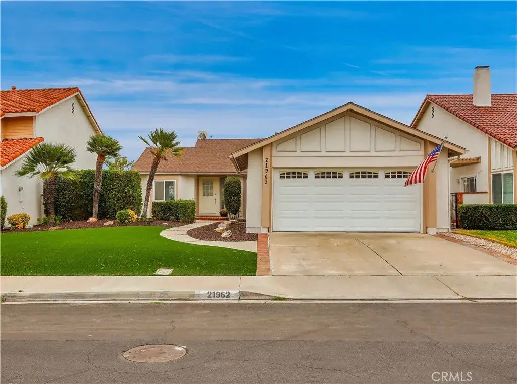 Desirable single level home blessed with stunning panoramic views of the Saddleback mountains, vibrant sunrises, and Lake Mission Viejo 4th of July Fireworks, recently upgraded and improved, this beauty is superbly located in the peaceful Montiel community within walking distance of Lake Mission Viejo main gate and beach. The highly manicured landscaping with water conscious artificial turf creates a wonderful first impression. The front entry boasts a prized Dutch Door opening to a charming custom tiled foyer welcoming you into the home. Once inside, prepare to fall in love with the light-filled newly painted interior, sleek luxury vinyl plank floors, new light fixtures, new molding, trim, and baseboards, vaulted ceilings, and spectacular sit-down mountain views creating a superb living environment. The living room is the perfect gathering space around the cozy brick fireplace with sliders opening to the backyard providing an ideal indoor-outdoor living area. The spacious dining room has sliders opening to the outdoor spaces providing a wonderful flow for hosting and entertaining loved ones. The sparkling light and bright kitchen has timeless white Shaker cabinetry, sleek Quartz countertops, built-in wine cooler, and large windows taking full advantage of the amazing views. The primary suite is a peaceful retreat with new ceiling fan, new Berber carpeting, direct access to the backyard and views, and a beautifully updated master bath with Quartz topped Shaker Vanity, new shower, new toilet, and new lighting. The guest bedrooms also include new Berber carpeting, new ceiling