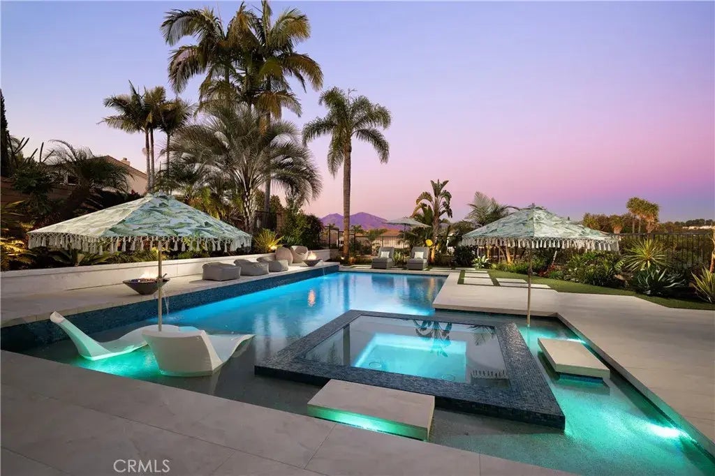 A Benchmark for Luxury in Pacific Hills! With over $1,000,000 in premium upgrades, this home is one of Mission Viejos finest offered! Thoughtfully reimagined, this exceptional property, seamlessly blends indoor-outdoor living for an unmatched lifestyle. The homes living space has been expanded with appx. 1,280 sq. ft. of outdoor luxury! From the family room and kitchen, La Cantina sliding glass and French doors blur the lines between indoors and out. Gather in the fully covered outdoor living room and kitchen, turn on the fireplace, stream your favorite show, and cook al fresco on your Twin Eagles BBQ! Soak in the sparkling pool and oversized spa and relax on a built-in lounger on the Baja Step - all as you take in breathtaking Saddleback Mountain, city light, and canyon views! In the evenings, this entertainers paradise transforms with a fire and light showwith custom fire and water pots and multicolor pool lighting creating an unforgettable ambiance! Inside is just as special. Double doors open to a two story foyer and living room and a floorplan with excellent flow. There is a chef's dream kitchen where a custom island, quartz countertops, Viking and Dacor appliances, and a pull-out pantry make every meal a delight. The adjacent family room, with custom built-ins, a fireplace, and flush ceiling-mount Sonos surround sound, extends seamlessly into the outdoor spaces. Upstairs, the primary suite is a sanctuary, with direct access to the massive open-view deckperfect for morning coffee or evening wine. The redesigned bath is a luxurious retreat, featuring marble finishes, Ba