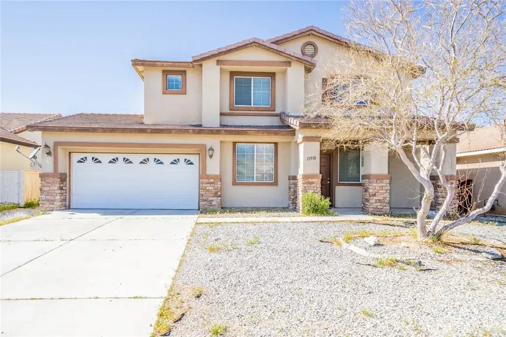 Welcome to this large home with 5 bedrooms plus a loft, 3 baths, and with 2,343 sq ft on 6,346 lot size. You are greeted with a covered front porch. as you enter the home, the open floor plan begins with a living room/dining room combo, followed by the kitchen with granite countertops and backsplash, a sit-up island, a walk-in pantry, a breakfast nook, and a slider to the backyard. The kitchen is wide open to the large family room with an electric fireplace and media niche, and both have matching tile flooring. The first floor has not one but two bedrooms, both with walk-in closets; one faces the front of the house, and one faces the backyard for generational living. These 2 rooms share a bathroom with a walk-in shower. As you make your way to the second level, a large loft awaits with a balcony, a convenient laundry room with a deep sink, a primary bedroom with vaulted ceilings, an ensuite bath with dual sinks, a separate tub, a walk-in shower, and his and her walk-in closets. Two good-sized secondary bedrooms share a bathroom with dual sinks and a tub/shower combo. Other features include flush mount ceiling lights in all bedrooms, matching electric fireplaces in the family room and primary bedroom, and a convenient second floor laundry room with a deep sink and tile flooring. Cosmetic fixer being listed below market for fast sale. The home is being sold in "as is" condition.