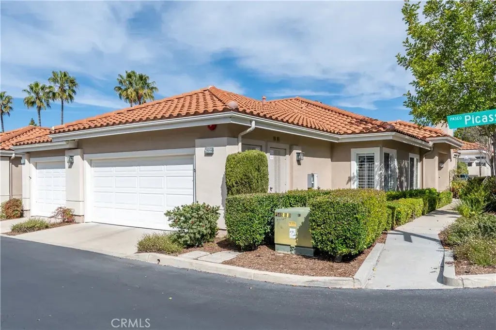 PALMIA, an active, vibrant, 55+ community like no other, offers A meticulously maintained 2 bedroom end unit beauty with upgrades galore. Living room with custom entertainment center and recessed lighting, cozy fireplace and sliding door to patio. Separate dining area. Laminate wood flooring through living areas, tile in kitchen and baths. Plantation shutters, crown molding and 4" baseboards throughout. Light, bright kitchen, with breakfast nook, upgraded cabinets with rollouts, granite countertop, tile backsplash, extra-deep sink, under counter lighting, and newer stainless steel appliances. Spacious master suite with two large closets and ensuite double basin bathroom with upgraded cabinets, lights, mirrors, granite countertop, porcelain tile shower with zero clearance shower door, iron rubbed bronze designer fixtures and grab bars. 2nd bedroom on the opposite side of the house for privacy. Hall bathroom also completely upgraded! Separate laundry room includes newer washer/dryer. Newer 2 speed, high-efficiency heating/air-conditioning, newer 50-gallon hot water heater, lots of extra storage in laundry room and garage. REPIPED WITH PEX. Palmia offers numerous amenities, including an 18 hole putting green, tennis, paddle tennis, pickleball, bocce ball, shuffleboard and much more! All in immaculately kept grounds with 24-hour guard gated security. Includes membership to Lake Mission Viejo with fishing, boating, and a spectacular summer concert series.