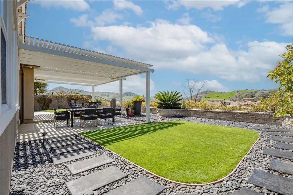 Experience breathtaking panoramic views from this exquisite single-story Cortesa home, nestled in the prestigious 55+ Gavilan community of Rancho Mission Viejo. Set in a private, serene location with no road noise, this home is designed for both entertaining and relaxation, offering an inviting backyard retreat complete with a California Room, outdoor fireplace, water fountain feature, and a Pergola. Step inside to an open-concept floor plan that seamlessly connects the bright and airy living spaces. The chefs dream kitchen boasts high-end appliances, ample counter space, stylish cabinetry, and a wine refrigeratorperfect for culinary enthusiasts. The spacious primary suite is a private sanctuary featuring a luxurious en-suite bathroom and generous walk-in closet, while the secondary en-suite bedroom ensures comfort for guests. A dedicated home office with custom built-ins and a bookshelf adds both functionality and charm. This exceptional residence is filled with premium upgrades, including plantation shutters, custom interior design work, surround sound in the living room, a separate living area, ceiling fans, and more. The epoxy-finished garage offers ample storage with built-in cabinets, while the central vacuum system adds an extra touch of convenience. Positioned in the heart of the 55+ Gavilan community, this home is more than just a place to liveits a gateway to a vibrant, resort-style lifestyle with exclusive access to clubhouses, pools, fitness centers, and social events. Dont miss this rare opportunity to own in one of Orange Countys most desirable neighborhoodssc