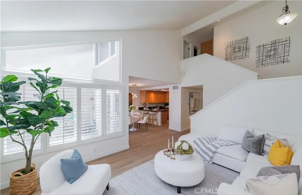 This exceptionally inviting home, seamlessly blends modern luxury with comfort.A beautiful abundance of natural light pours into the home, enhancing the stylish modern interior that creates a warm, welcoming, and peaceful atmosphere.The spacious entryway opens to a bright and airy floor plan, featuring a generous living room with soaring ceilings, a cozy fireplace, and a wall of windows that flood the space with abundant natural light. The newly installed modern flooring and fresh paint enhance the brightness and warmth throughout the first floor. The separate dining area opens to both the living room and the stylish kitchen, and is elegantly connected to the expansive backyard through graceful French doors, creating a seamless indoor-outdoor dining experience. The kitchen boasts stunning granite countertops, durable solid wood cabinetry with build-in drawers, stainless steel appliances, and a breakfast bar, offering ample storage and inspiring culinary creativity. The indoor laundry room includes built-in cabinetry and provides direct access to the one-car garage. Upstairs, youll find two spacious, well-lit bedrooms and a modern bathroom. The primary suite includes a vanity area and a large walk-in closet, with windows overlooking the generous private backyard. The second bedroom is also filled with natural light, providing a comfortable and inviting space. The entire home is equipped with custom wooden shutters, allowing for precise light control while offering enhanced privacy. Additionally, the entryway includes a convenient powder room and a storage nook beneath the st