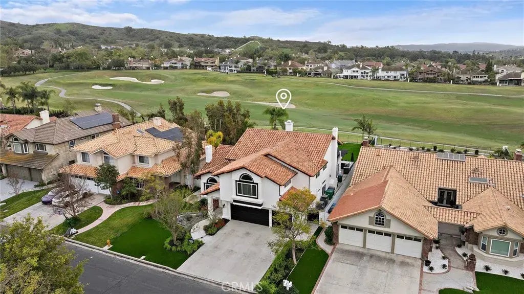Experience unparalleled luxury at 18 Calle de Princesa in the gated community of Coto de Caza. Discover an extraordinary opportunity to own a meticulously upgraded estate with a pool. This exceptional residence, situated on a single-loaded cul-de-sac, boasts panoramic golf course views overlooking the 11th and 12th fairways. Upon entering, you are welcomed by a grand foyer that leads to a spacious living and dining area, showcasing soaring vaulted ceilings, elegant flooring, and custom trim. The upgraded chef-inspired kitchen is a masterpiece featuring a generous center island with quartz countertops, state-of-the-art appliances, including a Thermador oven, and seamless integration with the expansive family room. The inviting family room boasts a cozy fireplace, a sophisticated bar, and a curated wine display, perfect for entertaining. The downstairs is complete with a private bedroom with an ensuite bathroom. Ascend the elegant staircase to the primary suite, offering sweeping golf course views, a private balcony, and a dedicated vanity area. The remodeled primary bathroom is a spa-like retreat, showcasing a stunning soaking tub, dual vanities, a separate shower, and a walk-in closet concealed behind elegant barn-style doors. A versatile bonus room, currently utilized as a theater, provides additional entertainment space. Two secondary bedrooms, connected by a stylishly shared bathroom with dual sinks and a shower, complete the upper level. The resort-style backyard features a sparkling pool and spa, a built-in barbecue area with ample seating, and low-maintenance turf, al
