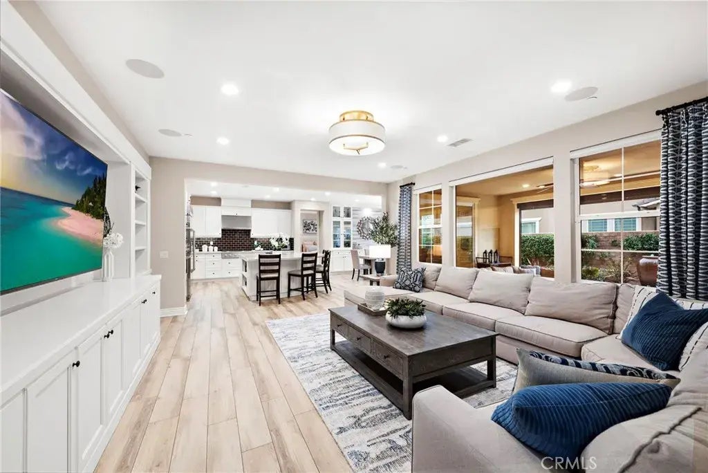 Welcome to 15 Vagar Street, an exquisite single-story residence in the vibrant 55+ community of Rancho Mission Viejo. Spanning 2,121 sq ft this home is thoughtfully appointed with designer-curated details/lighting as well as thoughtful upgrades including custom barn doors, custom closet organizers in both bedrooms, curated wall coverings, beautiful lighting and chandeliers, plantation shutters, and custom cabinetry-offering a seamless blend of modern elegance and comfort. Step inside to discover an open layout featuring two spacious bedrooms with luxurious ensuite bathrooms plus an oversized office/den with built-in desk for two and a powder bathroom all grounded by the great room at the heart of the home. The entire home is adorned with custom wall coverings and LVP floors throughout creating a cohesive and stylish environment. This exceptional floorplan with the great room leading to the oversized kitchen island with seating for four and adjacent to the dining room with plenty of room for a large table for entertaining. Thoughtfully designed gourmet kitchen is a chef's dream, equipped with GE Monogram appliances, including a 6-burner stove and a 42" built-in refrigerator, white cabinets with soft close, limestone quartz countertops and a dream pantry. The outdoor room is a true retreat, complete with a media wall with gas fireplace and a motorized sun shade screen, perfect for enjoying year round. Paver patio includes a dining area with steel patio cover, tranquil bubbling fountain, and wrap around turf side yard. Coveted corner lot with the pocket park as the side neighb