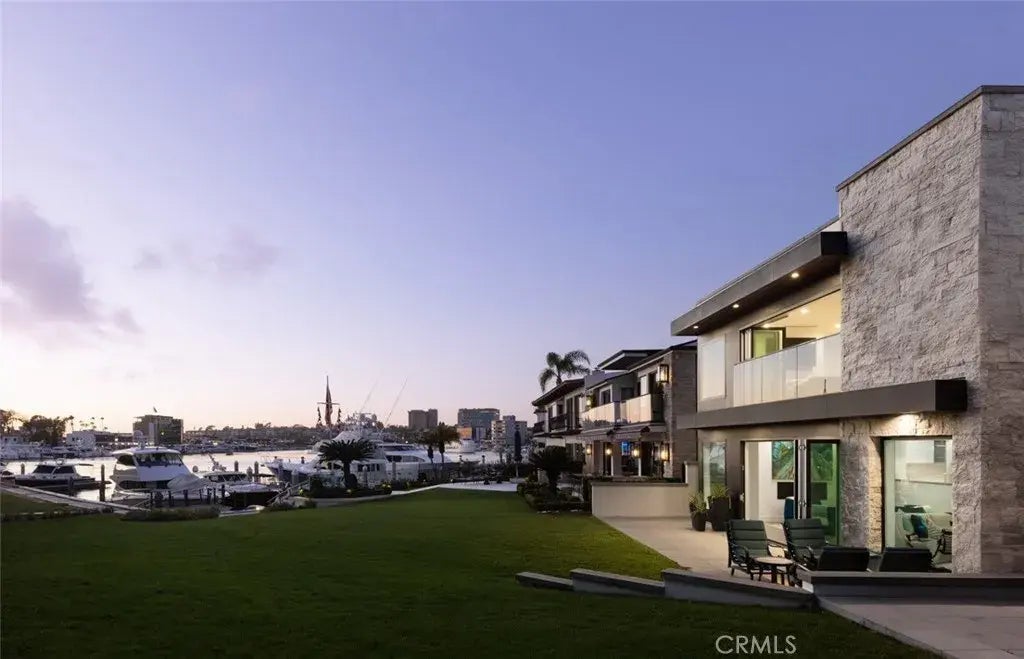 Step into luxury coastal living at 113 Via Lido Soud, a fully furnished, move-in ready waterfront estate on the coveted Lido Isle. Rebuilt in 2021, this modern 3,700 sq. ft. residence offers a seamless blend of contemporary design and coastal elegance, featuring breathtaking bay views, an expansive greenbelt patio, and a 65 private dock. A tranquil breezeway with a water feature welcomes you into the sun-drenched, open-concept living space, designed for both relaxation and entertaining. The great room, surrounded by floor-to-ceiling glass doors, offers stunning water views and direct access to the patio, creating an unparalleled indoor-outdoor flow. The chefs kitchen is a showpiece, boasting imported Brazilian green quartz countertops, Sub-Zero appliances, custom automated cabinetry, a large island with seating for four, and wine and beverage coolers. A glass-enclosed 100-bottle wine wall adds a sophisticated touch to the main living area. The main floor is complimented with a spacious bedroom, featuring its own private entry, and full bathroom. The floating glass staircase leads to a spacious media room with surround sound, perfect for movie nights. The primary suite is a true retreat, offering a fireplace, dual walk-in closets, and accordion-style glass doors opening to a private deck with panoramic bay views. The spa-inspired bathroom features a freestanding soaking tub, oversized walk-in shower, and an automated Toto toilet. Two additional ensuite bedrooms, with private patio access, provide ample space for family and visitors. Outside, the bayfront patio and lush green