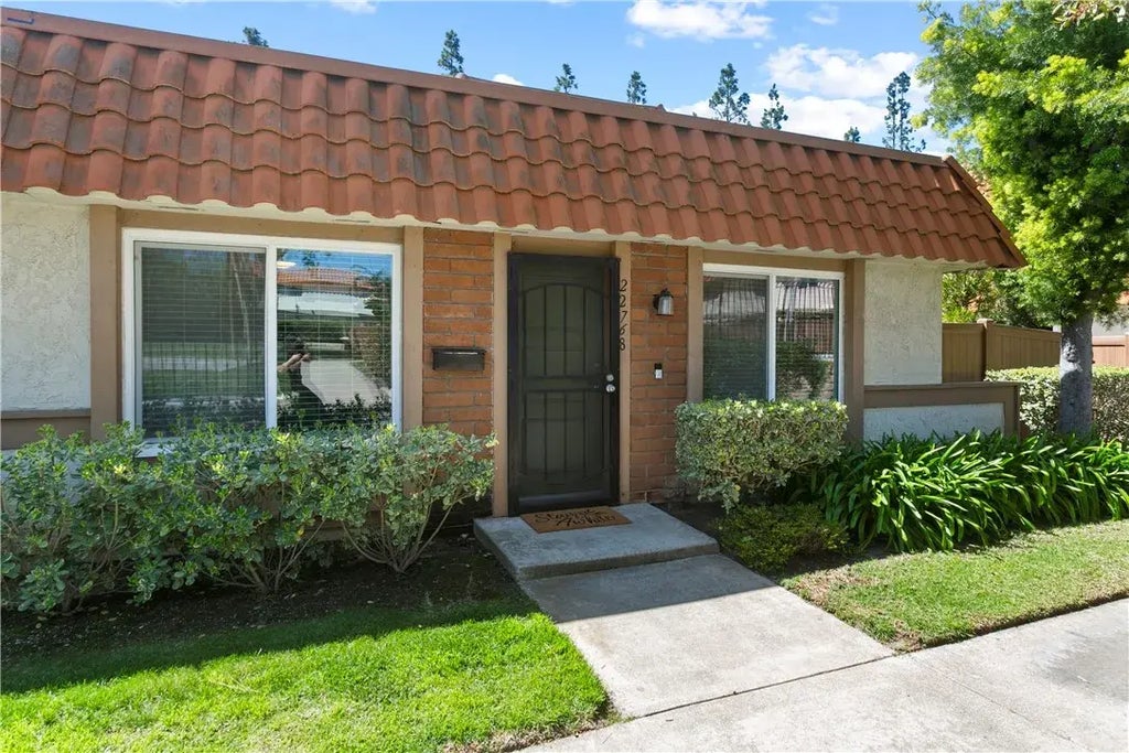 Ideally situated at the rear of the complex, this condo is complemented by a charming path surrounded by trees and greenery, creating a park-like setting.This delightful home offers a single-level lifestyle with no one above or below. The feeling is open and modern with large windows and stylish wood-look tile floor throughout. Enjoy cooking in the updated eat-in kitchen with granite counters and stainless steel appliances. The private covered patio is a perfect spot to unwind or entertain guests. Relax at the end of the day in the spacious primary suite, complete with an updated full bathroom. The thoughtfully designed floor plan also includes two generously sized secondary bedrooms and a remodeled full guest bathroom. Additional features include a full-sized washer and dryer, a one-car garage with storage, and an additional parking space in the driveway. Conveniently located near schools, parks, shopping, dining, and freewaysand just steps away from the community pool and basketball courts.