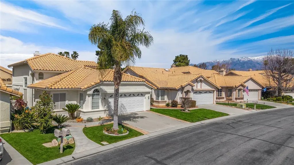 This beautiful home boasts as one of the largest in Sun Lakes Country Club estates. It presents with a large open floor plan giving it a welcoming and spacious look. Large well-placed windows provide welcome rays of sunlight that accentuate and give warmth to the inviting living spaces of the home. This wonderful home provides 3 bedrooms (using the loft office as a bedroom/office). It has 2 bathrooms, one being a large master bathroom which has a recently installed newer tub/shower. The master bedroom is large with a beautiful window door access to the backyard and includes a deep walk-in closet with plenty of room for clothes and a changing area. The luxurious kitchen provides a large usable island where the family can sit for breakfast at a beautiful granite-counter. The rest of the kitchen also shows with this same granite look, and is provided with stainless steel appliances, tall cabinets, roll-out shelves in the island, and a spectacular and cozy family room with a fireplace. This home also offers a formal dining room and living room with high ceilings for that open and spacious look and provides a magnificent view of the winding stair-case to the upper level of the home. The surroundings of the remodeled landscaping is quite serene. There is a calming fountain welcoming you to relax. A white vinyl picket fence and gate are added for privacy. You will feel peace and tranquility every time you come to your home. There is an aluma-wood patio cover as a welcoming highlight to this beautiful backyard. Included also are delicious fruit trees of orange, lemon, and nectarin