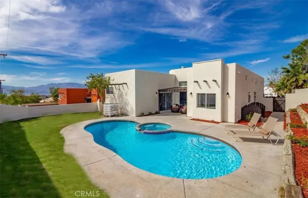 MASSIVE PRICE REDUCTION!!!!! Turnkey gorgeous property, being sold as a fully furnished incredible desert home! Newly renovated with a Spanish-contemporary design that has been beautifully executed throughout. 3 bedroom & 2 full baths with a total of 1,651 SqFt. Great PANORAMIC mountain views from the front & rear of home. The kitchen has been beautifully updated with a large peninsula, breakfast nook, dinning area, a stunning backsplash & stainless steel appliances. The fireplace is a great accent piece, its beautiful with a clean design...So many upgrades. Newer doors, plumbing, electrical, appliances, interior paint, new exterior paint, AC system, flooring, new epoxy garage floors, new & updated cabinets, new hardware and fixtures and the list goes on....Laundry is inside and window Shutters throughout . The oversized double car garage is attached, drywalled with epoxy floors. The Pool and spa was recently updated to enjoy on those hot summers days while relaxing with stunning panoramic mountain views! There is also room for RV/Toys parking.Great Investment! *Subject to cancellation of current escrow.