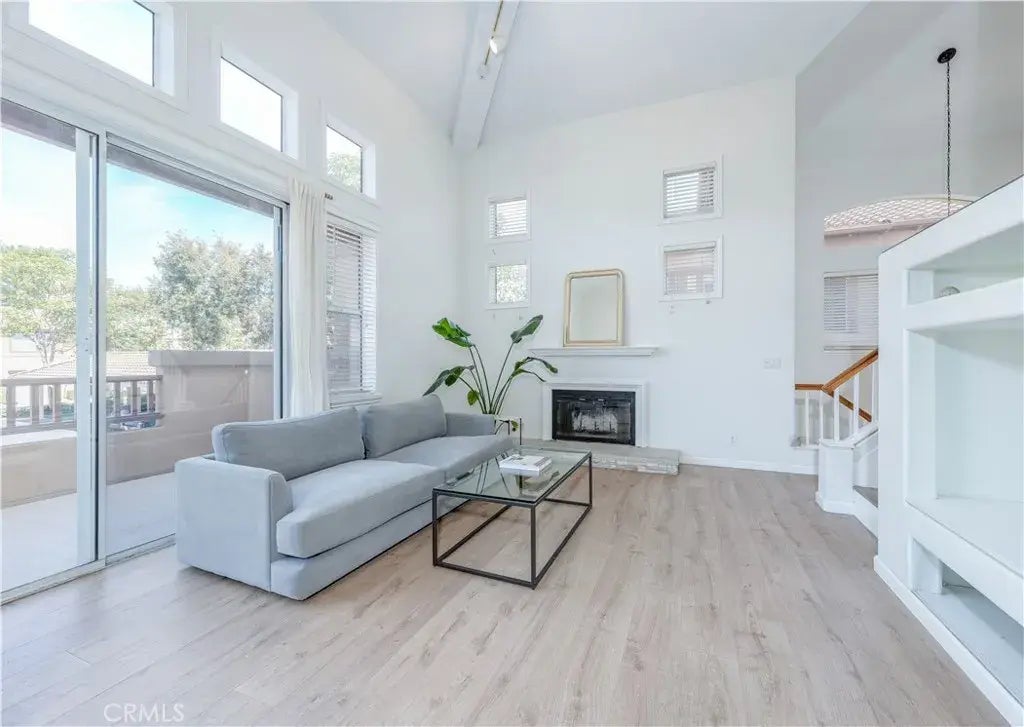 This beautifully remodeled end unit presents an inviting living experience that elegantly combines style and comfort. Offered as the largest floor plan in the community, this home encompasses 1,387 square feet of thoughtfully designed living space with soaring ceilings throughout, two spacious bedrooms, and two modern bathrooms. The airy living room is bathed in natural light with a charming fireplace that creates a cozy, welcoming atmosphere. The contemporary kitchen is a culinary delight, offering generous counter space with modern quartz countertops and an elegant white tile backsplash. Ample cupboard space ensures you have everything you need within reach, while the convenient serve-over bar encourages casual dining and social gatherings. The main level bedroom and bathroom provide flexible living options, and a dedicated private laundry room enhances the home's practicality. Step outside onto the expansive balconythe largest in the entire complex, spanning 32X7 FEETwhere you can unwind amid serene views and fresh air, with convenient access from both the living room and the bedroom. This unit also features a versatile bonus loft, perfect for a home office or creative space, along with the primary bedroom and a full bathroom. Enjoy the convenience of 1 ATTACHED SINGLE-CAR GARAGE AND 1 DETACHED SINGLE-CAR GARAGE WITH STORAGE. Additional upgrades include a state-of-the-art water softener, a Tesla EV wall charger for eco-friendly living, and a new air conditioning and heating system installed in 2024 to guarantee your comfort throughout the seasons. Perfectly situated in a
