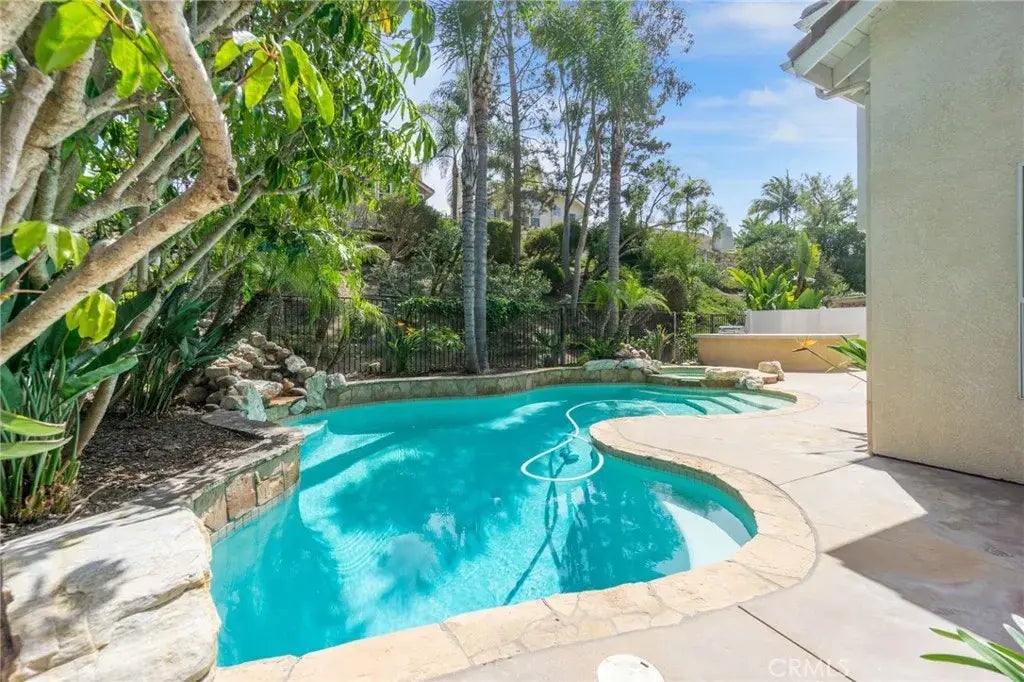 This beautiful home is located in a quiet cul-de-sac away from busy roads in the highly sought-after Flora Vista community of Forster Ranch! Step through custom double doors into a living room with soaring cathedral ceilings, abundant natural light, and an open floor plan ideal for modern living. The formal dining room overlooks the private backyard oasis, where a sparkling saltwater pool with a custom rock waterfall sets the tone for resort-style living. The upgraded kitchen features white cabinetry, quartz countertops, soft-closing drawers and cabinet doors, stainless steel appliances, a spacious pantry, and a large garden window that floods the space with light. A cozy breakfast nook flows into the inviting family room with a warm fireplaceperfect for relaxing evenings. Upstairs, the spacious primary suite offers vaulted ceilings, dual closets, and a spa-inspired bathroom with a jetted soaking tub, oversized shower, dual vanities, and updated tile flooring. Three additional bedrooms provide flexibility for family, guests, or a home office. Fresh paint brightens the interior, creating a warm and inviting ambiance. The private and tropical backyard offers a serene retreat for relaxation and entertainment complete with a refreshing saltwater pool, spa, lush landscaping, a newly custom-built BBQ island with a large built-in grill, bar seating and a new outdoor refrigerator. Upgraded pool equipment includes a newer heater, pump, and saltwater system. Additional highlights include hardwood floors downstairs, plush carpeting upstairs, new light fixtures, plantation shutters, a