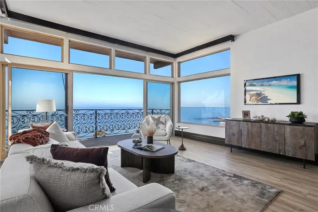 Perched high above the Pacific on one of South Laguna Beachs most exclusive vantage points, this newly reimagined Mediterranean chateau offers an unparalleled fusion of luxury, serenity, and breathtaking natural beauty. With unobstructed 180-degree views from the beaches below to Catalina Island, San Clemente Island, Palos Verdes, and beyond, this is a rare opportunity to own a piece of the coveted California Riviera. Spanning 3,100 square feet on a 6,336 sqft lot, this 4-bedroom, 3-bathroom retreat is designed to showcase the oceans ever-changing beauty. The main living area features walls of glass framing mesmerizing ocean panoramas, filling the space with golden sunsets and the sound of crashing waves. Manufactured wood flooring flows seamlessly through the open-concept layout, where a secondary living room with stone-accented walls offers a cozy yet refined escape, all framed by ocean vistas. The chefs kitchen is a masterpiece, featuring quartz countertops, stainless steel appliances, a double oven, and custom cabinetryall designed to capture breathtaking ocean views. The dining area extends to a private outdoor terrace with a built-in BBQ and al fresco lounge space to enjoy unobstructed ocean and sunset views. Upstairs, the primary suite is an unrivaled sanctuary with vaulted ceilings, a spa-like en-suite bath, and a private balcony seemingly floating over the horizon. Two additional ocean-view bedrooms and a versatile bonus room/office (or in-law suite) share a sleekly remodeled bathroom. A guest bedroom with French doors opens to a serene outdoor landing, offering an