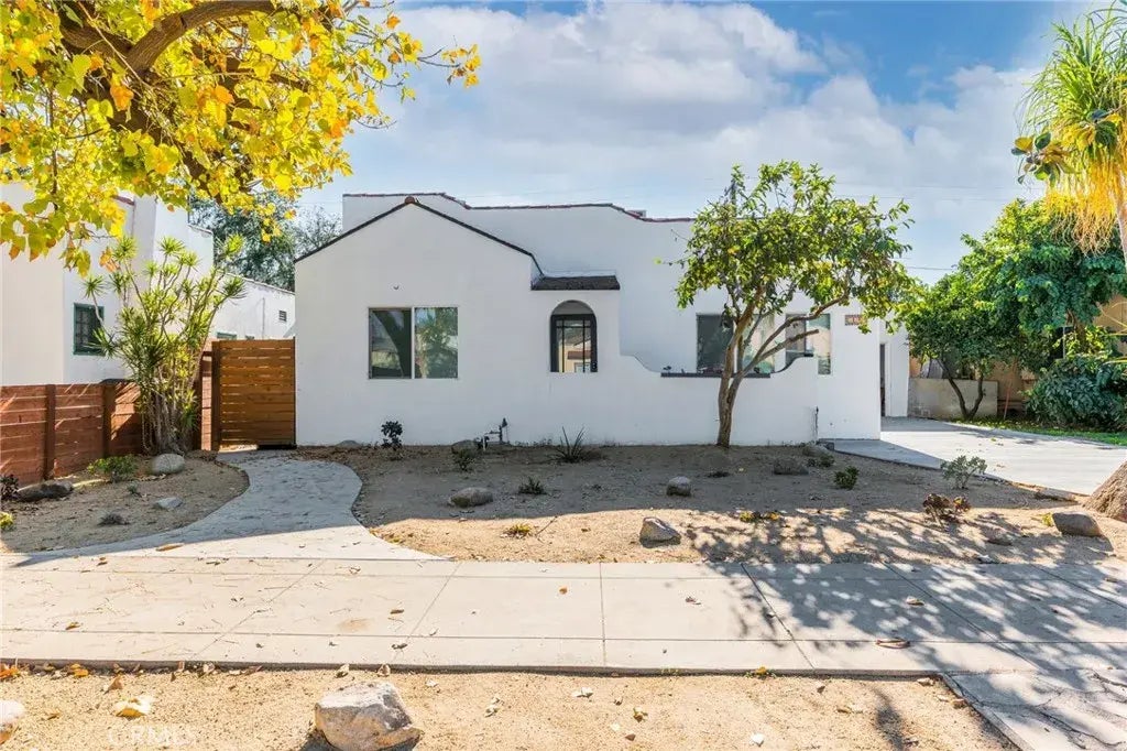 SINGLE-STORY SPANISH BUNGALOW LOCATED JUST MINUTES AWAY FROM DOWNTOWN FULLERTON! Step inside this quaint property and immediately notice the crafted living space adorned with traditional Spanish-style arches with modern finishes. The open floor plan is highlighted by a multitude of large windows for exceptional natural light. The living area features a decorative fireplace with a mantel and built-in shelving that is connected to the dining area and kitchen, perfect for entertaining guests. The classic chef-inspired kitchen features a large island, quartz countertops, farmhouse sink, sleek light fixtures and stainless steel appliances with an abundance of cabinetry for storage. This property boasts 2 sizeable bedrooms and 2 full bathrooms with playful tiles that accentuate the homes charm. The primary suite features an ensuite bathroom with a stand alone shower and a walk-in closet. Enjoy the spacious and private, low-to-no maintenance backyard that also includes a mature avocado tree for al-fresco dining or BBQs, ideal for the upcoming summer season! There is a detached ADU with a separate entrance next to the main house. Washer and dryer conveniently located in the garage. Centrally located near shopping centers, markets, restaurants and more. Easy access to the 57, 91 and 5 freeways.