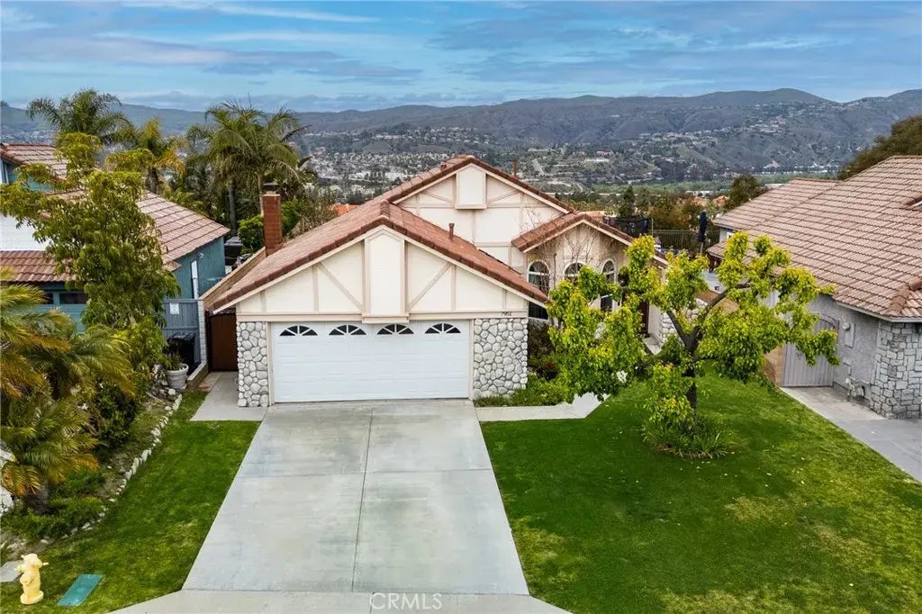 Welcome to this charming single-story home nestled in the heart of Anaheim Hills. This exquisite residence boasts four spacious bedrooms and two beautifully renovated bathrooms, offering a perfect blend of comfort and style. Step inside to discover tall volume ceilings in the formal living room and dining room, a warm and inviting relaxing space featuring a working fireplace, ideal for cozy evenings. The kitchen is equipped with a breakfast bar, dishwasher, and a gas stove, making meal preparation a breeze. The primary bedroom offers a serene retreat with patio slider out to enjoy the views, an ensuite bathroom featuring double sinks, renovated walk-in shower and a walk-in closet, providing ample storage and convenience. Three additional bedrooms and updated hall bathroom with walk in shower, new vanity, mirror, sink, faucet. Home has air conditioning and central heating, ensuring year-round comfort. The practicality continues with a washer/dryer hookup in the direct access two car garage. Long driveway for extra parking. Covered patio entices you outside to enjoy endless vistas from the rear yard. This home offers a perfect balance of modern amenities and traditional charm, making it the right place to call home.