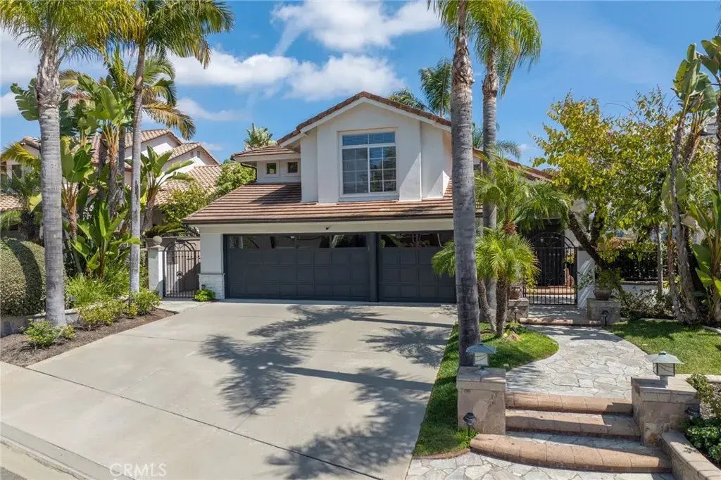 Welcome to your dream home at 26772 Barkstone Lane, nestled in the prestigious Moulton Ranch neighborhood of Laguna Hills, California. This stunning, updated 4-bedroom, 3-bathroom single-family residence seamlessly blends luxury and comfort, offering an idyllic retreat in the heart of Orange County. Step through the private courtyard and enter via elegant double doors into a grand foyer that showcases the homes transitional style. Soaring ceilings in the formal living and dining rooms immediately impress, highlighted by a striking curved staircase, sophisticated wall paneling and crown molding. The open, light-filled floor plan flows effortlessly, creating an inviting space for entertaining or cozy family nights. Facing east, this home captures morning sunlight and breathtaking views of the Saddleback Mountains and twinkling city lights, providing a scenic backdrop from every angle. The updated interior exudes elegance with timeless charm. The gourmet kitchen features sleek finishes and ample space, seamlessly connecting to the living areas. A versatile multipurpose room on the second floor adds flexibilityideal as a home theater, playroom, or retreat. The expansive primary suite is a true sanctuary, complete with a private balcony that opens to stunning views of the Saddleback Mountains and city lights, generous closet space, and a beautifully updated en-suite bathroom. Three additional bedrooms provide flexibility for guests, a home office, or a growing family, with two more stylishly updated bathrooms ensuring convenience and comfort for all. Every detail of this home ha