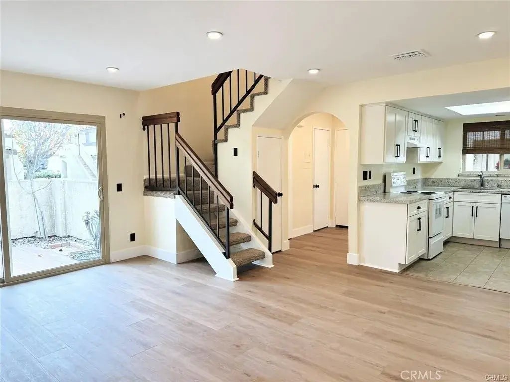 This charming townhome is perfectly situated in a prime corner location, Offering two spacious primary bedrooms, each with their own full bathrooms and walk-in closets, this home provides ample space and privacy. The main level features an open, inviting layout with a bright living room that flows seamlessly into a private patio, ideal for relaxing or entertaining. A convenient downstairs bathroom adds to the home's functionality. The fully upgraded kitchen, brand new bathrooms and showers, and new flooring downstairs create a fresh, modern atmosphere. Additional updates include recessed lighting, new windows and sliding door throughout, and fresh interior paint. Complete with an indoor laundry closet (washer and dryer included), this home is ready for you to move in and enjoy. Enjoy the convenience of an oversized car garage and an assigned parking space, offering plenty of room for your vehicles. The Las Palmas community is well maintained and offers amenities such as a swimming pool, a jacuzzi, a clubhouse, and ample parking for visitors.