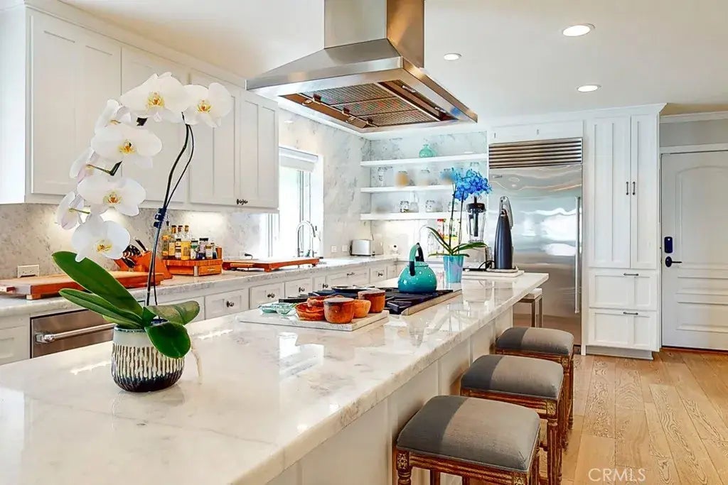 Welcome to this exquisitely remodeled ocean view home on the Gold Coast of Old Town Seal Beach. It is located just 25 steps to the sand and beach, with a completely open concept and spectacular gourmet chef's kitchen to die for! The open concept downstairs area unfolds into the fireside living space with stack-stone and a large adjustable TV above it, flowing into the dining area and kitchen. With the perfect blend of functionality and beauty, the kitchen is what you have always dreamed of, showcasing a sub-zero refrigerator, freezer drawers, dual sinks, Bosch dishwasher, wine refrigerator, gorgeous marble countertops to the ceiling, tons of counter and cabinet space, and a large island with Wolf stove and convection steam oven. The 2 car garage fully remodeled garage includes lots of built-in storage, TVs, tankless water heater and soft water system. The garage makes for a perfect additional entertaining space for friends and family parties. Upstairs there are 3 remodeled bedrooms, 2 bathrooms and a laundry room. The master en-suite is a beautiful sanctuary with luxury master bathroom, beautiful walk-in closet, balcony with ocean view, additional step down area for an office or sitting room and access to the spacious roof deck with stunning ocean views. The step down room in the master could potentially be repurposed to serve as a 4th bedroom. There is also another balcony upstairs. Two other spacious bedrooms are also included along with a gorgeous remodeled bathroom and laundry room with washer/dryer in the hallway. The balcony in front of the home features close-up sand