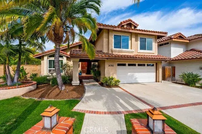 Welcome to Ambia in the heart of Mission Viejo! This beautiful four-bedroom, two-and-a-half-bathroom home is located on a spacious corner lot in a rare double-ended cul-de-sac, offering both privacy and community charm in one of Mission Viejos most desirable neighborhoods. Inside, you're greeted by soaring ceilings and a warm, inviting floor plan. The living room flows into a formal dining room and out to a private side yardcomplete with a cozy fire pit and seating area, perfect for morning coffee or winding down under the stars. The kitchen opens to the family room featuring a stone fireplace and direct access to the entertainers dream backyard, complete with a built-in BBQ, bar area, and multiple seating and conversation spaces perfect for gatherings or relaxing. Upstairs, the spacious primary suite offers vaulted ceilings, a huge walk-in closet with custom built-ins, and a brand-new walk-in shower. Three additional bedrooms share a hallway bathroom with double sinks and a shower/tub combo. Thoughtful touches like hallway linen storage add convenience to the second-floor layout. A few items worth menitioning are: home was re-piped in 2013, newer HVAC system installed, new windows and screens throughout in 2016, an indoor laundry room with washer and dryer included, a well-equipped kitchen with refrigerator included, garden window with a view of the backyard, and a two-car attached garage with ample storage and workbenches. Beautiful curb appeal and mature landscaping complete the picture. Access to Lake Mission Viejo is the icing on the cake, offering amenities like ponto