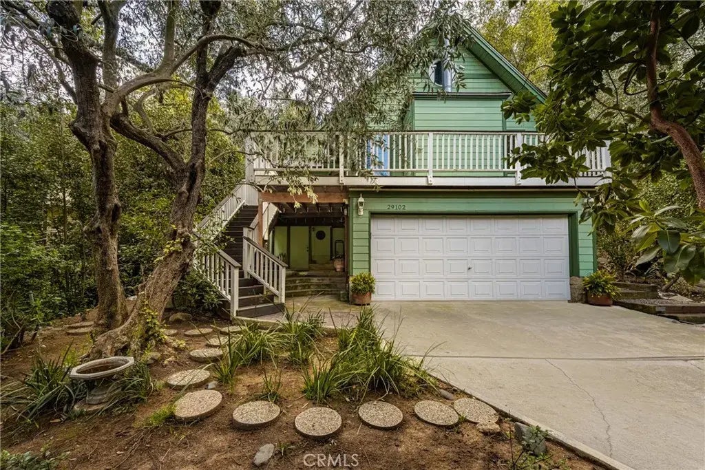 MODERN CANYON LIVING AT IT'S FINEST! This turn-key move in ready home is nestled in a breathtaking canyon setting. Inside, this stunning 2-bedroom, 2-bathroom home offers a private spacious livable loft that can easily be converted into a 3rd bedroom. This architecturally captivating two-story home boasts soaring 17-foot-high beam ceilings in the living room, custom-built wall-to-wall bookcases, and a charming, vintage cast-iron woodstove in a large rock fireplace enclosure, creating a warm and inviting ambiance. The elegantly designed interior features wide-plank white oak flooring that flows seamlessly throughout the main level, enhancing the home's sophisticated yet cozy appeal. The gourmet kitchen is equipped with high-end appliances, while the delightful breakfast nook offers a peaceful spot to enjoy your morning coffee. Exquisite windows fill the home with natural light, including custom round and stained-glass accents that add a touch of artistic charm, complementing the unique character of the canyon community. Climate control is effortless with an adaptive Nest thermostat system, ensuring year-round comfort. A separate basement laundry area includes a washer and dryer. Step outside onto the gorgeous wraparound front deck and staircase, crafted from premium, water-resistant Brazilian Ipe hardwood, offering a picturesque setting to enjoy the surrounding beauty. The spacious two-car garage offers ample storage and a custom-built wine refrigerator. The driveway is framed by majestic mature olive trees, a large Italian stone pine, and lush strawberry trees, provides a g