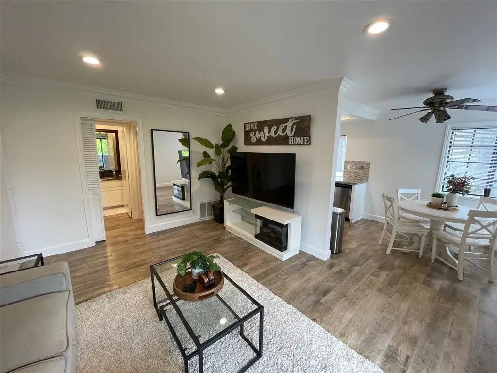Come see this upper level renovated 1-bedroom condominium that offers modern living with stylish amenities perfect for a comfortable and convenient lifestyle. This home is beautifully partially furnished (just bring your bed), and features a private balcony. Other features include wood vinyl plank flooring, in-unit washer & dryer, central air conditioning, a large walk-in closet, big screen TV in living room and bedroom, and complete kitchen appliances. The Santiago Springs condominium community is a private gated access community for security. Vehicle parking for the home is an assigned carport with ample open parking throughout the community. The community common amenities include an association pool/spa area, professional landscaping and waterscape with ponds. The home is near restaurants, shopping (South Coast Plaza) and freeway access (405 & 55 Freeways). No pets allowed in this home.