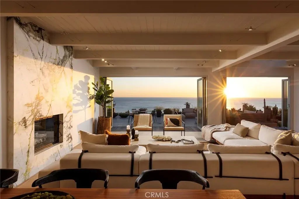 Occupying a rare bluff-front location with forever views of the Pacific, this single-level stunner is one of the most iconic and stylish mid-century offerings to ever become available. From the moment you arrive, the home has a magnetic aesthetic unlike any other. The use of giant imported boulders, rare cacti, beach sand, and modern, yet organic materials all create an undeniable first impression. Upon entering the space, a crisp emerald horizon immediately draws you to it. Through large-scale, bi-folding doors at the rear, 180 ocean views span the Dana Headlands in the north across to Cottons Point in south & beyond, with everything in between. A generous patio off the back finished in quarried stone lends itself to entertaining around the fire pit with overwhelming ocean views including surfers riding waves out front, Pelicans soaring by, Catalina & San Clemente Islands garnishing the horizon, sailboats racing about, the historic San Clemente Pier to the south, surreal sunsets year-round, and the etched coastline paired with the sound of crashing waves just below. A picturesque location, the ocean and its powerful environment is ever-present here. Having undergone a large-scale remodel in 2021, it is evident that discerning decisions were made and most aspects of the home were upgraded despite paying homage to its original 1964 allure. Featuring a simple floor plan with one massive great room, (kitchen, living, & dining) three bedrooms & two bathrooms (ocean-view primary) all on one level, nearly all rooms feature an undeniable ocean view. Other values include: paid sola