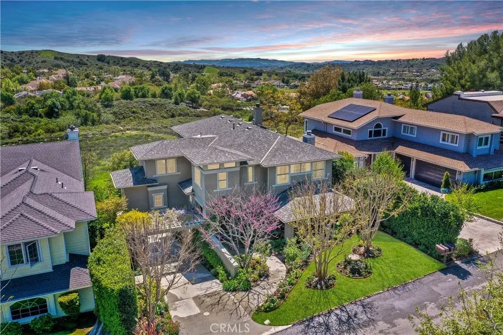 Exquisite Custom Home in The Village Coto de Caza. Welcome to this stunning custom-built Craftsman-style luxury residence, nestled in the highly sought-after and exclusive Village neighborhood of Coto de Caza. Situated on a private cul-de-sac with sweeping panoramic canyon and mountain views, this architectural gem offers the perfect blend of elegance, comfort, and modern design. Built in 2007, no detail was spared in this one-of-a-kind home. Spanning three thoughtfully designed levels, the main floor of the home features a formal dining room with French doors that open to a covered patio perfect for an after-dinner nightcap or quiet peaceful retreat. Next is a state-of-the-art chefs kitchen outfitted with top-of-the-line Wolf appliances, custom cabinetry, granite countertops, a charming farmhouse sink, center island, walk-in pantry and rich hardwood floors that flow seamlessly throughout the main living areas. The inviting family room is the heart of the home, boasting breathtaking views and a full bar, nestled in a spacious room thats perfect for entertaining or a cozy night watching TV. The main floor is completed with powder room and office with built-in shelving. Custom staircase leads you to the third level, where the expansive primary suite awaits, showcasing serene views from every window, exquisite built-in cabinetry, a luxurious spa-like bath with dual vanities, a spa tub and large walk-in shower. The massive, double, walk-in closet and dressing area completes the primary retreat. The upper level is also home to two additional spacious bedrooms with en-suite bath