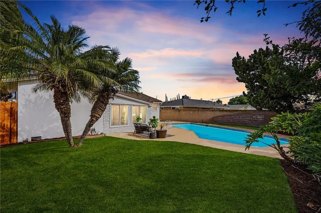 Come & enjoy all that this fully renovated, single story pool home has to offer. It is nestled in the heart of La Mirada - close to shopping, dining and is centrally located. The home offers an open concept design that seamlessly connects living areas, kitchen, and outdoor spaces creating the perfect space for entertaining. Step inside to experience a meticulously designed interior featuring brand new quartz countertops with sophisticated gold accents & complemented by a designer backsplash. The wide plank floors provide a sleek and contemporary foundation, while dual pane windows ensure energy efficiency and comfort. The home comes fully equipped with state-of-the-art amenities including new stainless appliances,, Nest thermostat, and central AC/Heat. Two fully upgraded bathrooms add a touch of luxury with stunning gold finishes that showcase exceptional design. Outside, an amazing pool awaits, offering the perfect retreat & entertaining space for summer days. The spacious driveway and two-car garage offer ample storage for your weekend adventures and recreational equipment. This is more than just a house - it's a lifestyle waiting to be embraced. A true gem in a highly desirable neighborhood, this home represents an unparalleled opportunity for those seeking comfort, style, and functionality