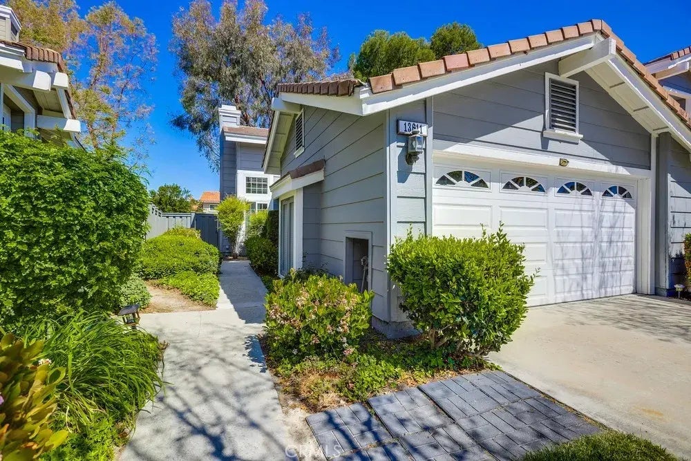 Gorgeous turnkey home blessed with a prized single level floor plan superbly situated in the desirable Sycamore Glen community ideally located in Tustin Ranch just a few steps from the community pool and Camino Real Park and within walking distance to the Tustin Market Place with numerous shopping and dining venues. This sought after end unit lives like a Single-Family Residence and boasts a 2-car garage and a private wrap around backyard. Charming exterior features create a welcoming first impression. Travel down the front walkway to the private front entrance and step inside to soak in the soaring cathedral ceilings and the light filled interior. Sleek luxury wide plank vinyl flooring throughout, recessed lighting, and a neutral paint palette set the stage for a perfect living environment. The living area is blessed with a cozy fireplace and is open to the dining room which has direct access to the backyard patio creating an ideal indoor-outdoor living space for gatherings. The light and bright kitchen has Granite countertops, timeless cabinetry, upgraded stainless-steel appliances, and lovely views of the backyard spaces. The Primary Bedroom Suite is a private retreat with high vaulted ceilings, recessed lighting, sliders opening to the backyard patio, two closets with mirrored closet doors, and a spacious bathroom with Granite topped vanity and Granite shower surround. The secondary bedroom also has high vaulted ceilings and a walk-in closet. The full guest bathroom with Granite topped vanity and Granite shower surround is located just off the hallway next to the conven
