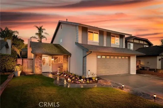 Amazing newly remodeled single family home with NO HOA and NO Mello Roos on a culdesac street in wonderful area of Lake Forest. As you drive up, you will be enticed by the beautiful curb appeal with custom hardscape in the front yard and charming covered porch at the entry as well as an extra wide driveway. Feel right at home as you enter through a leaded glass entry door to a fresh and bright home with wood / gas fireplace in living room, gorgeous wide plank French oak vinyl floors, all new open kitchen, big dining room and amazing fully permitted family room addition with vaulted ceiling and two sets of doors to the yard which is ready for entertaining this summer with paver patio, built-in bar with gas grill. New kitchen has white cabinets, soft close features, porcelain slab countertop, full backsplash and stainless steel appliances and has room to add an island, there us a large pantry at the hallway and storage closet as well. Main-floor powder room is remodeled with a beautiful new sink vanity with porcelain slab countertop and each bathroom has window for natural light. The direct access garage has a 240 volt receptacle, insulated roll up door with remote opener and laundry with sink and side by side washer and dryer included. Formerly a 4 bedroom converted to have a large primary suite with retreat and en-suite bath with new dual sink vanity with quartz counter, white cabinetry with soft close doors and drawers. Two additional bedrooms upstairs share a beautiful remodeled bath and each room has new mirrored wardrobe doors. Noteworthy features are a newer high end e