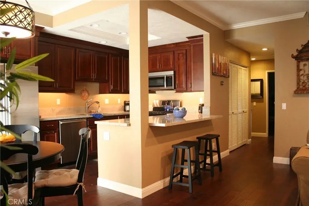 This beautifully renovated home offers the perfect blend of comfort and contemporary living. The kitchen has been redesigned to open to the Living Room, featuring granite countertops and additional cabinetry in the dining area. The bathroom has been updated with dual sinks, a custom cabinet, a shower /tub surround finished with Zalage tiles, a new shower fixture, and modern lighting. The garage has undergone a complete transformation including clean epoxy flooring, freshly painted drywall, upgraded lighting, a mini-split air conditioning and heating system, and added attic storage including a convenient pull down ladder, making it a versatile space that can serve as an office or playroom by day and car storage by night. Luxury vinyl flooring has been installed throughout, complemented by Living Room shutters, energy-efficient low-e dual pane windows, and a remodeled fireplace, giving the home a truly destinctive character. A private patio adjacent to the kitchen provides an ideal space for entertaining or grilling. The spacious dining area, enhanced with a modern light fixture, accommodates multiple guests. Both bedrooms are bright and generously sized with one offering convenient access to second private patio. The home's location is within walking distance to Springbrook Elementary School, Woodflower pool, Briarglen Park and South Lake Middle School, adding to it's appeal. As a Woodbridge resident you will enjoy access to an exceptional range of amenities, including 22 pools, two picturesque lakes, two tennis clubs, two beach clubs, and numerous parks in the community. Do