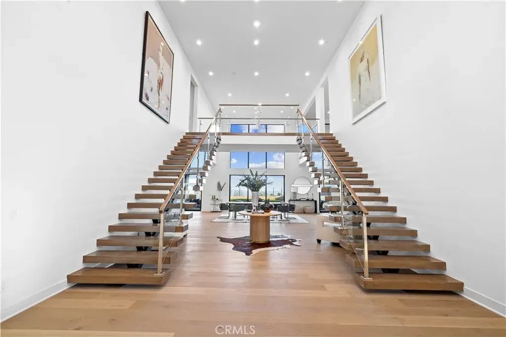 Welcome to the luxurious guard-gated community of Westcliffe at Porter Ranch! Offering breathtaking city lights and mountain views, along with tennis courts and more, this community promises a serene and picturesque lifestyle. 20416 Albion Way boasts stunning scenic vistas from multiple vantage points, both inside and outside the home. As you enter, you'll be greeted by the highly coveted floating staircase, creating a grand and inviting ambiance. Recessed ceiling lights illuminate the home in the evenings, while ample natural light graces the interiors during the day. The spacious living area features a modern linear fireplace, creating a cozy and inviting atmosphere that families adore. The chef's kitchen is a true masterpiece, featuring an exquisite marbled kitchen counter that beautifully complements the light-colored cabinetry. This home offers the convenience of hard flooring throughout. Generously sized bedrooms and a spacious laundry room cater to the needs of a bustling household. The master bedroom is a sanctuary in itself, with an opulent soaking tub, his and her sinks, a stunning standing shower, and a massive walk-in closet complete with its own balcony. With plenty of flexible spaces, including a delightful loft, as well as a sizable yard and deck, this residence offers an abundance of opportunities for both relaxation and recreation. Don't miss the chance to experience the luxurious lifestyle that awaits in this remarkable home. Schedule your viewing today!