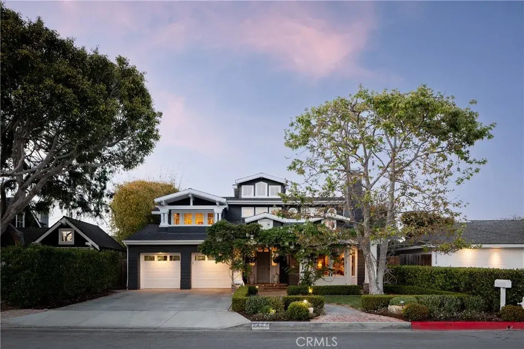 Located on an oversized lot, on a picturesque tree-lined Newport Heights street, 2400 Holly Lane is an inviting, happy home that provides a sense ease and calm. This +/-4400sf craftsman style home is clad in shingle siding with soaring ceilings in the split-stairway entry and has hardwood flooring throughout. A formal dining room with coffered ceilings is accessed from the entry or from the butler's pantry and sits adjacent to the formal living room which has double doors out to a front patio and one of the four fire features on the property. Offering four en-suite bedrooms upstairs, and a Jr. primary suite on the first level, this home offers a traditional, yet open floor plan and efficient use of space. The back yard offers tremendous privacy with a soaring ficus hedge surrounding a large stone-clad pool and jacuzzi. A grassy yard is complemented by a gas fire pit, built in BBQ and covered outdoor fireplace. Ideally located a very short distance to excellent Newport Mesa Unified schools, and less than a half mile from 17th Street & Westcliff with its shopping & dining, this home is truly in an ideal location. 2400 Holly Lane is an exceptional property that feels familiar and offers one the sense of "home."