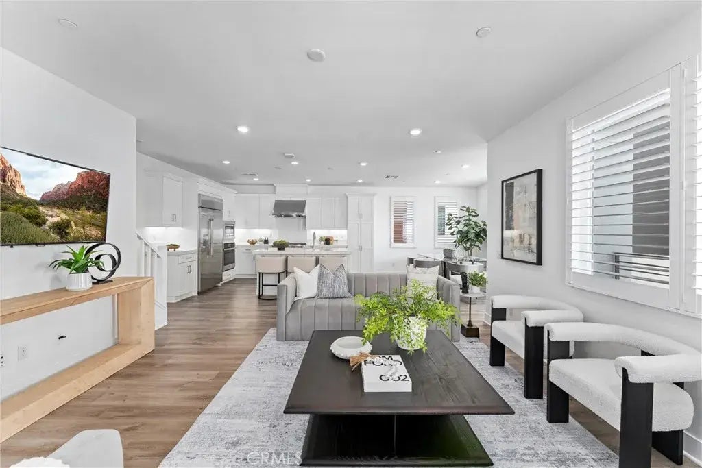 Situated in the heart of Tustin Legacys vibrant Levity community, this multi-level, FULLY DETACHED residence offers contemporary comfort and high-end upgrades across 3 bedrooms, 2.5 bathrooms, and a versatile BONUS ROOM. Designed with both function and style in mind, the main level features an expansive GREAT ROOM that flows seamlessly into a sleek gourmet kitchen with QUARTZ countertops, STAINLESS STEEL appliances, and an OVERSIZED kitchen island with bar seating. Just off the main living area, enjoy a spacious second-floor BALCONYperfect for morning coffee or evening unwinding. The upper level hosts all bedrooms and a dedicated laundry room with a newer washer and dryer. The PRIMARY SUITE serves as a tranquil retreat with a WALK-IN CLOSET, DUAL vanities, a large walk-in shower, and private water closet. Downstairs, the entry-level bonus room opens to a beautifully curated PRIVATE PATIO, complete with GAS FIRE PIT, Belgard pavers, wood garden wall, LED lighting, drip irrigation, and new dog turf with BUILT-IN DRAINAGE. Additional features include SMART HOME TECHNOLOGY with Alexa controls and smart hubs, solar panels, tankless water heater, WATER SOFTENER, LVP flooring, premium carpet, plantation shutters, designer roller shades, and a 2-car DIRECT ACCESS GARAGE with utility sink and GarageMonkey storage system. Fresh interior paint completed in 2024. Residents enjoy access to resort-style amenities including a pool, spa, and BBQ area. Located near Legacy Magnet Academy, The District, parks (including Bark Barracks dog park), major freeways, John Wayne Airport, and just min