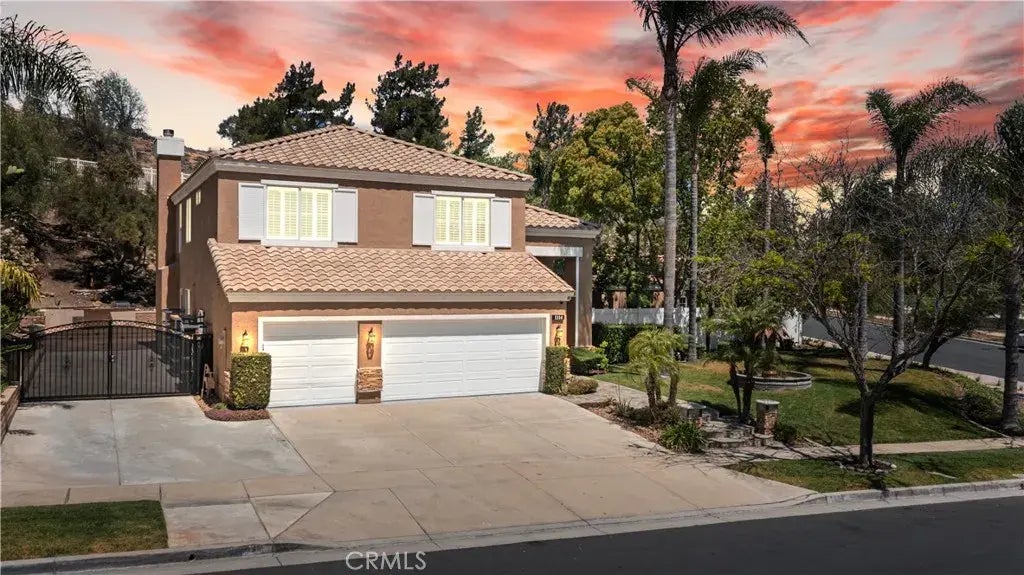 Gorgeous pool home with detached ADU!!! Timeless Elegance Meets Modern Living in Corona This rare gem offers a lifestyle of luxury, comfort, and convenience. Perfectly situated near major highways, schools, and shopping, this home sits on a sprawling 0.4-acre corner lot, surrounded by lush landscaping, fruit trees, and a new vinyl fence for added privacy. The tranquil fountain, mature palm trees, and inviting entryway create a warm welcome as you approach the three-car garage and gated driveway with space for your RV. Step inside the spacious foyer and marvel at the high ceilings, which set the tone for the bright, airy layout. The first floor boasts a versatile bedroom or office and a full bathroom, along with a formal living room and expansive family room for gatherings. Upstairs, the owner's retreat is a haven of relaxation, featuring a private balcony with stunning pool and hillside views, a luxurious en-suite bath with a jacuzzi tub, his-and-hers vanities, a separate enclosed shower, and walk-in closets ready for customization. This home is an entertainers dreamwhether indoors or outdoors. The open kitchen flows seamlessly into the living room and dining area, leading to a backyard oasis complete with a custom pool, in-ground spa, outdoor kitchen, and cozy fireplace. A detached guest house with full bathroom and large walk in storage area adds incredible versatility for visitors or extended stays. With low HOA dues, the savings in this prime location are just the cherry on top. Dont miss your chance to own this remarkable propertya rare combination of timeless elegance