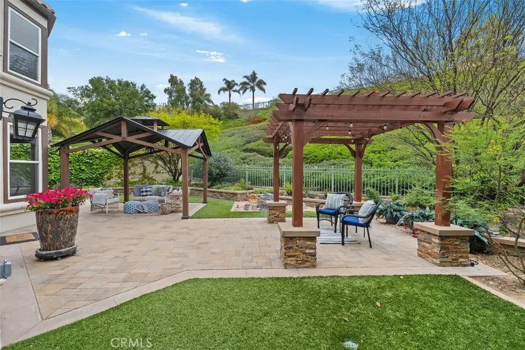 Experience Turnkey Luxury Living! Discover this exquisite turnkey residence nestled within the prestigious gated community of Dove Canyon. This home boasts 5 Bedrooms plus a versatile Loft/Bonus Room and 3.5 Bathrooms, offering an exceptional lifestyle. Upon entry you are greeted by soaring ceilings and an abundance of natural light. The living room is equipped with a fireplace perfect for entertaining. Enjoy a formal dining room with custom cabinetry. The remodeled kitchen is a chefs dream featuring quartz countertops, stainless appliancesincluding a six-burner cooktop and French-door refrigeratoran expansive island, self-closing cabinetry, and a custom backsplash. The kitchen opens to the family room, featuring built-in shelving framing a fireplace. Convenience meets comfort with a main-level bedroom complete with a full ensuite bathroom, ideal for guests or multi-generational living. The downstairs also includes a practical laundry room and a spacious three-car garage. Upstairs, find a versatile loft/bonus room, a spacious fifth bedroom with a vaulted ceiling, and a serene primary suite with a sitting area, walk-in closet, and a luxurious primary bathroom with dual vanities, soaking tub, and separate shower. Extensive upgrades include engineered hardwood floors, wood-look laminate, plantation shutters, and newer AC units. The backyard is a true paradise featuring two covered patios, a BBQ station, and a custom fountain for ultimate outdoor enjoyment. A rare opportunity in Sterling Heights! The home has a spacious attic with over 300 sqft (est.) of convenient storage. Loc