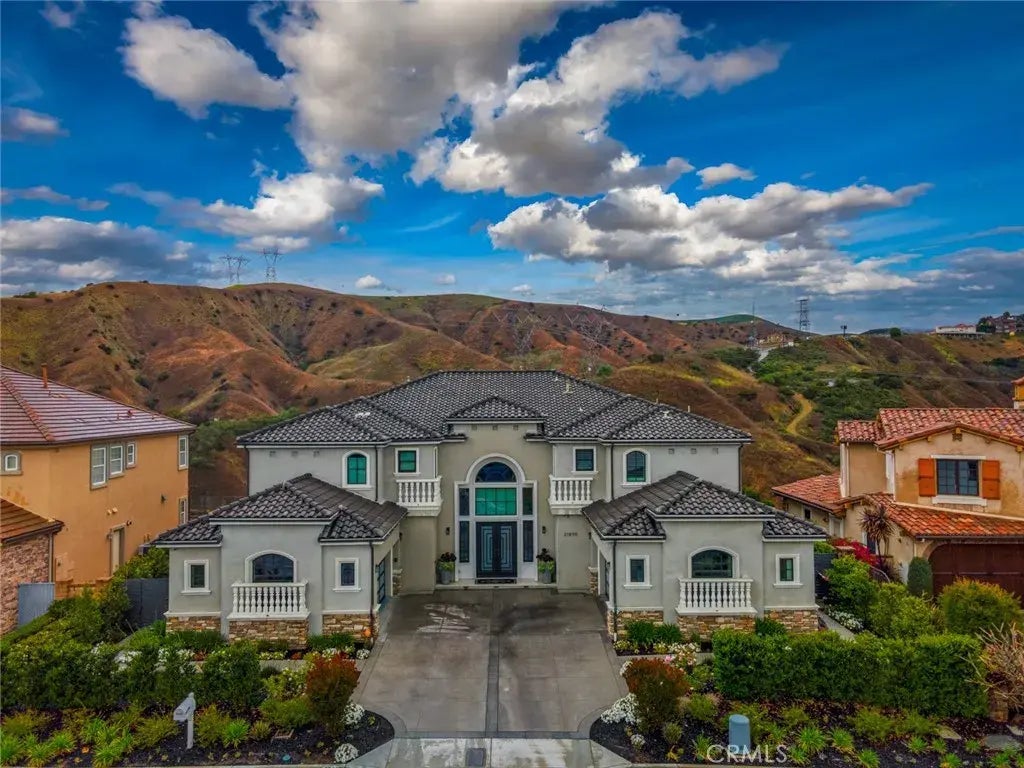 Nestled within one of Yorba Lindas most prestigious and secluded enclaves, this exquisite custom estate masterfully blends luxurious living with everyday comfort. Re-Built in 2017 and thoughtfully elevated with almost $700,000 in enhancements since, every detail has been curated to deliver a truly unmatched indoor-outdoor lifestyle experience. Step through the impressive new custom front door into a world of elegance, where a dual staircase, gorgeous marble and wood flooring, and coffered ceilings immediately capture your attention. The open-concept living spaces flow seamlessly, centered around a spectacular great room featuring a state-of-the-art projector and a chefs kitchen featuring gleaming Quartz countertops, double oversized islands, a built-in Thermador refrigerator, top-tier stainless steel appliances, and a secondary Wok kitchen for effortless entertaining. A full wall of accordion glass doors invites you to the ultimate private backyard sanctuary complete with a resort-style pool and spa, sunken firepit lounge, built-in outdoor kitchen with BBQ and beverage centers, putting green, and multiple covered seating areas for year-round al fresco living. This is true Southern California luxury at its finest. The first floor also offers a private guest suite and a custom wine room, perfect for showcasing your collection and entertaining guests in an intimate, sophisticated setting. Upstairs, you'll find three secondary bedrooms, the newly built laundry room, and an inviting loft. The primary suite is its own oasis, featuring a private balcony with breathtaking canyon v