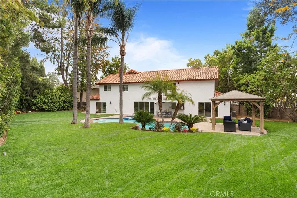 Welcome to the Crown Jewel of Serrano Park the largest and most luxuriously appointed home in the community! Situated on an expansive nearly 17,000 sqft pie-shaped corner lot, this 4200 sqft renovated 4-bedroom, 4-bathroom estate offers the ultimate in Southern California living. Featuring a 5th bedroom/office with direct backyard access and a full bath downstairs, this home blends space, style, and functionality in every corner. Enter through grand new 10-foot double doors into a light-filled space with new luxury vinyl plank flooring, fresh paint, and designer lighting including a striking chandelier over the stairwell. The gourmet kitchen is an entertainers dream with a large island, double ovens, and brand new stainless appliances, flowing into a spacious great room with extra-large sliders that open to your resort-style backyard. Outdoors, enjoy lush new landscaping, mature trees and palms for privacy, a sparkling pool and spa, and a lit pergola. A covered patio with a ceiling fan provides a cool retreat, while an oversized balcony off the primary suite offers stunning views. Upstairs, a spacious bonus room is perfect for a media room, home gym, playroom, or second living area. The primary suite is a true sanctuary with a new electric fireplace and spa-like en suite bath with a freestanding tub, walk-in shower, dual vanities, and his-and-her closets. This smart, energy-efficient home features fully paid solar with Tesla battery storage run the AC, heat the pool, and enjoy ultra-low electric bills year-round. Also included: Nest thermostat, vinyl windows, epoxy-floor