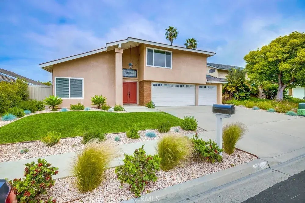 Welcome to your dream home in the highly desirable Dana Crest neighborhood! This turnkey 4-bedroom, 2.5-bath residence is the largest model in the community, offering generous space and a beautifully remodeled interior designed for modern living. The attached three-car garage and wide driveway provide plenty of convenient parking. Inside, you'll find stylish updates throughout, including wood flooring, dual-pane windows, modern light fixtures, and a whole-house fan for energy efficiency. The inviting living room welcomes you with vaulted ceilings, creating an open and airy ambiance perfect for relaxing or entertaining. Enjoy elegant dinners in the formal dining room, bathed in natural light and enhanced with updated lighting. The kitchen is a chefs delight, featuring stainless steel appliances, dual sinks, a charming bay window overlooking the garden, and ample counter space. Choose between casual meals at the breakfast bar or the cozy nook, then unwind in the adjacent den by the fireplaceyour ideal spot to relax at the end of the day. Step outside to a spacious and private backyard, complete with newly laid grass and low-maintenance landscapingperfect for hosting summer barbecues or simply enjoying your own outdoor oasis. The serene canyon behind the home adds a layer of privacy and nature. Upstairs, the oversized primary suite serves as a true retreat, offering space for a home office, gym, or reading nook. It also includes dual closets, a dressing area, dual sinks, and a separate shower. Three additional spacious bedrooms and a fully remodeled bathroom provide ample room